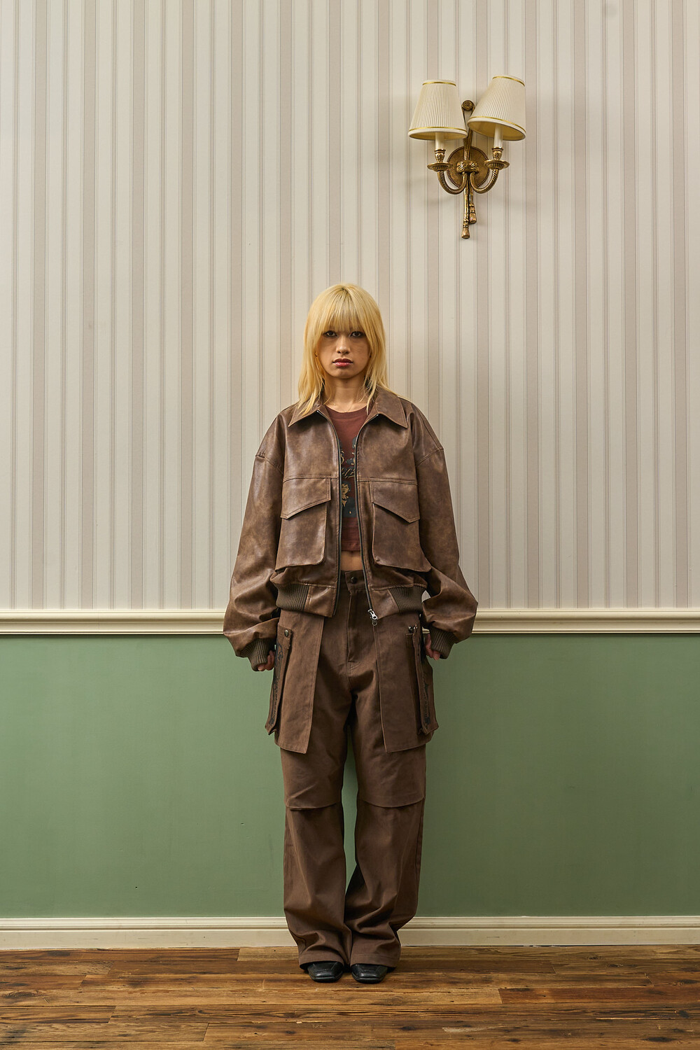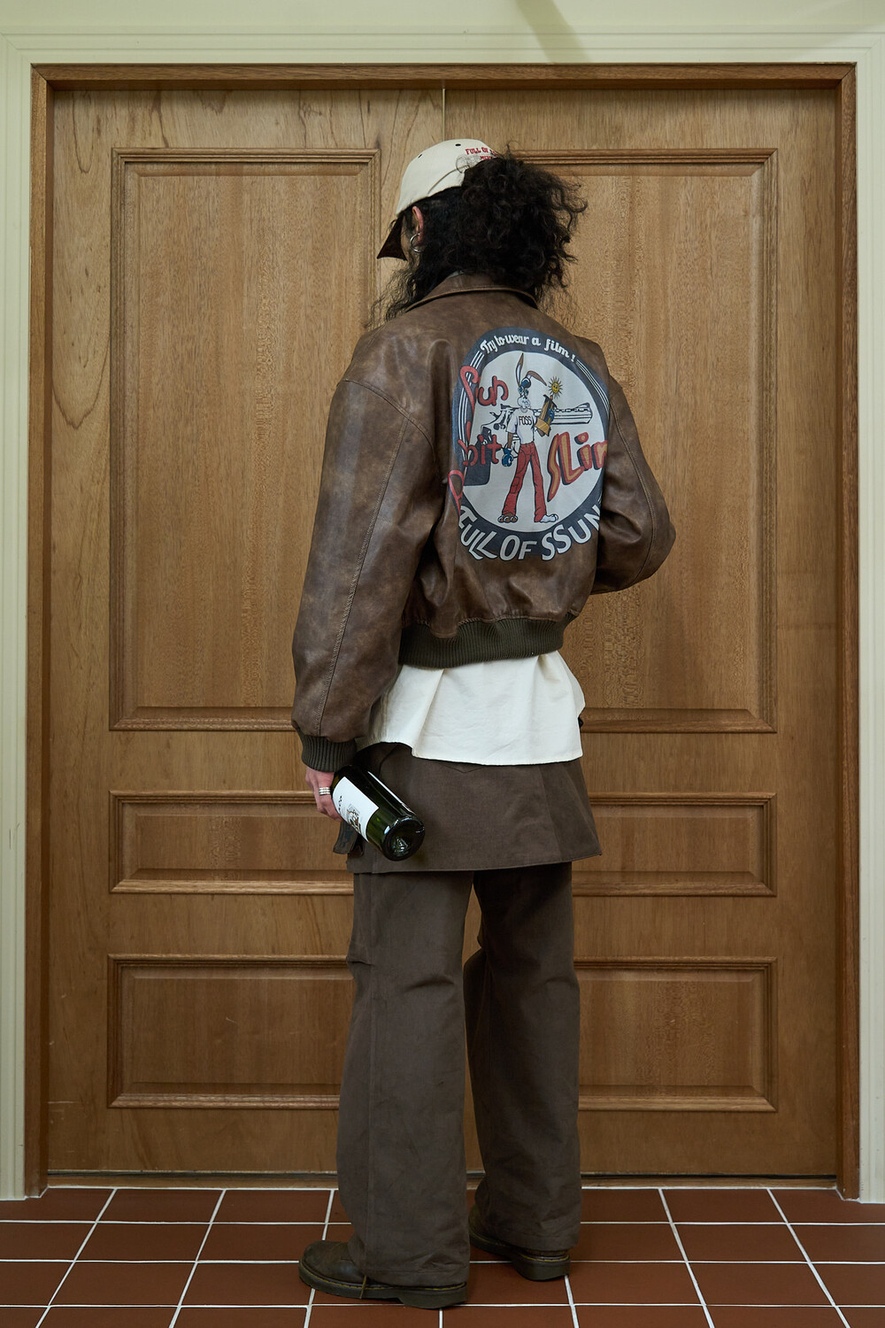 SSUN RABIT SLIMS Leather Jacket (Brown)