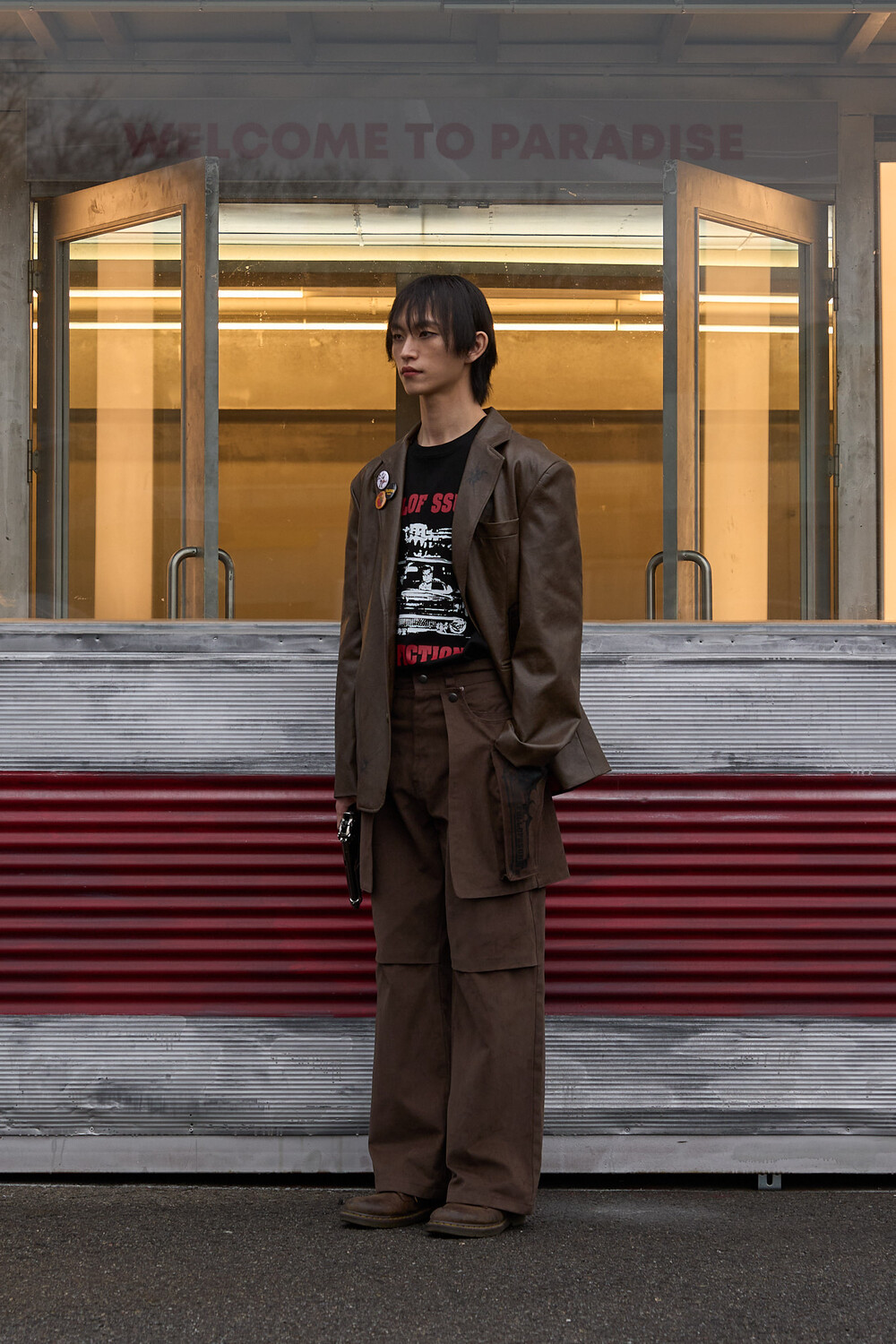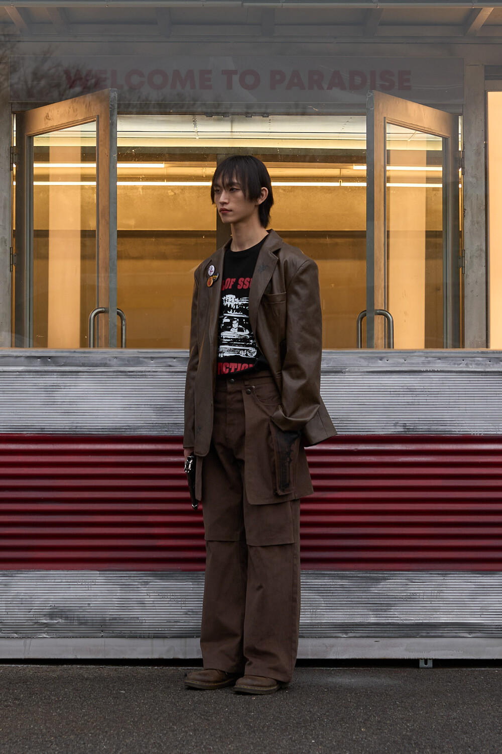 Gun Printing Leather Blazer (Brown)