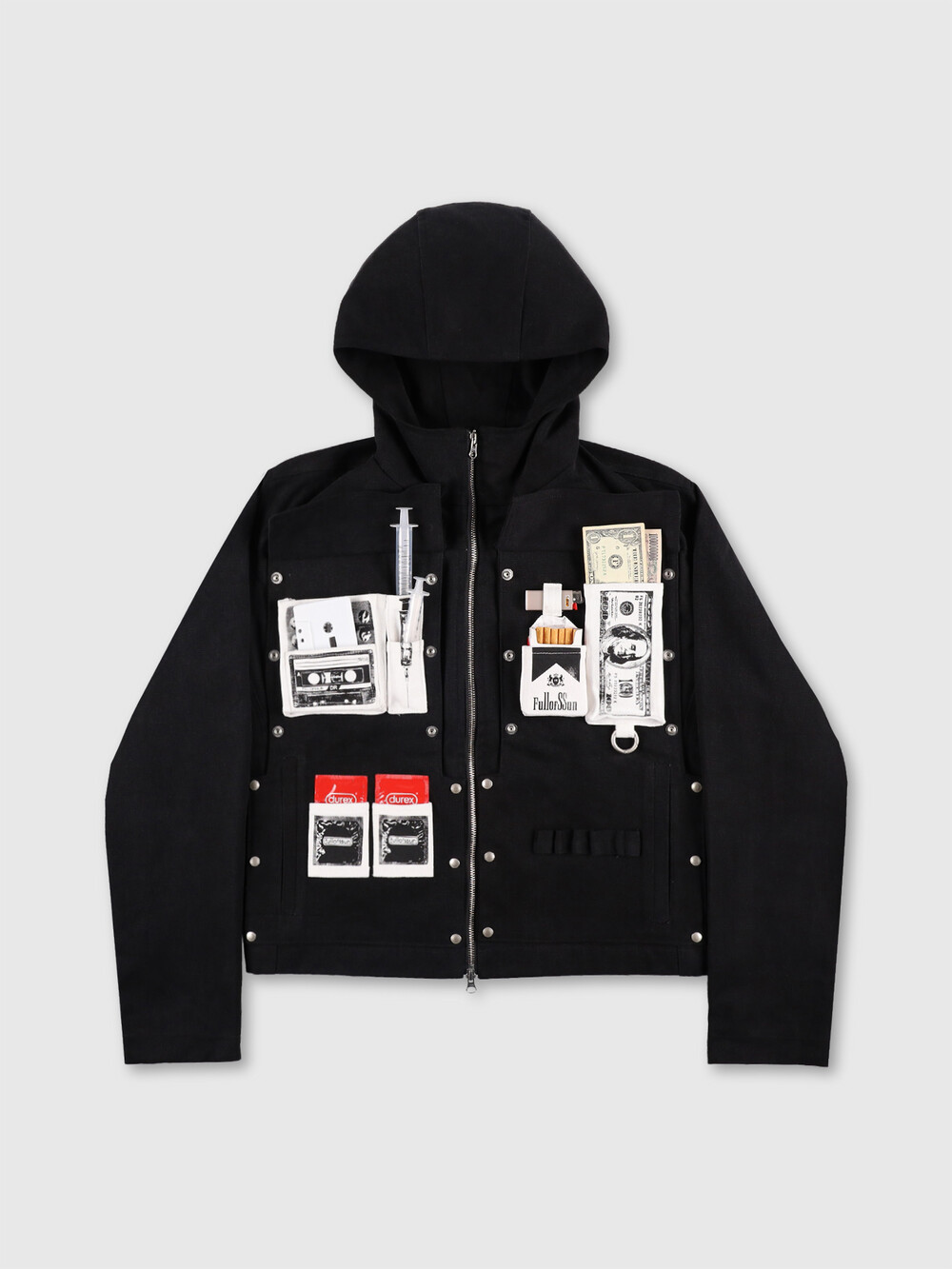 - FULLOFSSUN parody prints on each individual pocket.