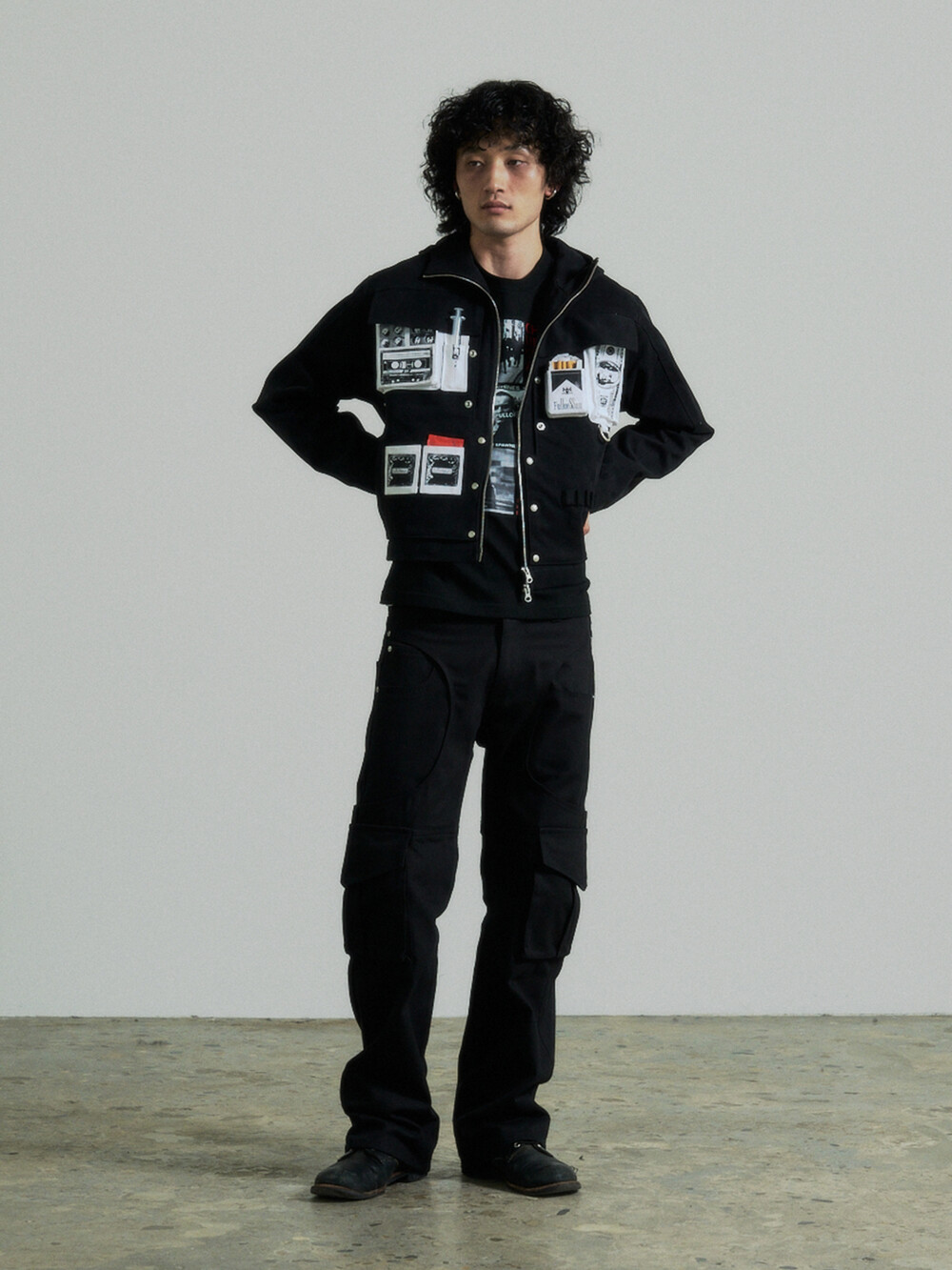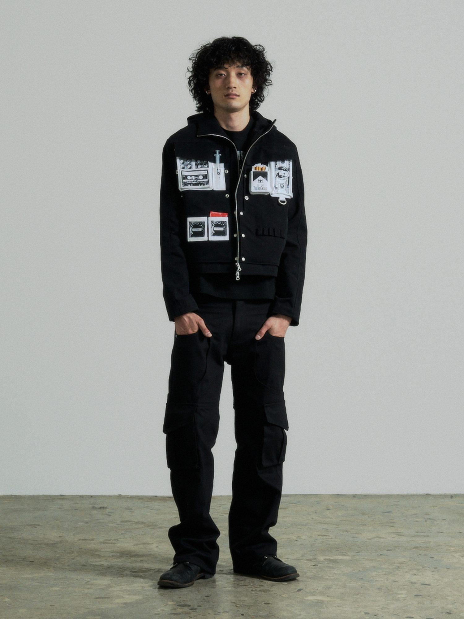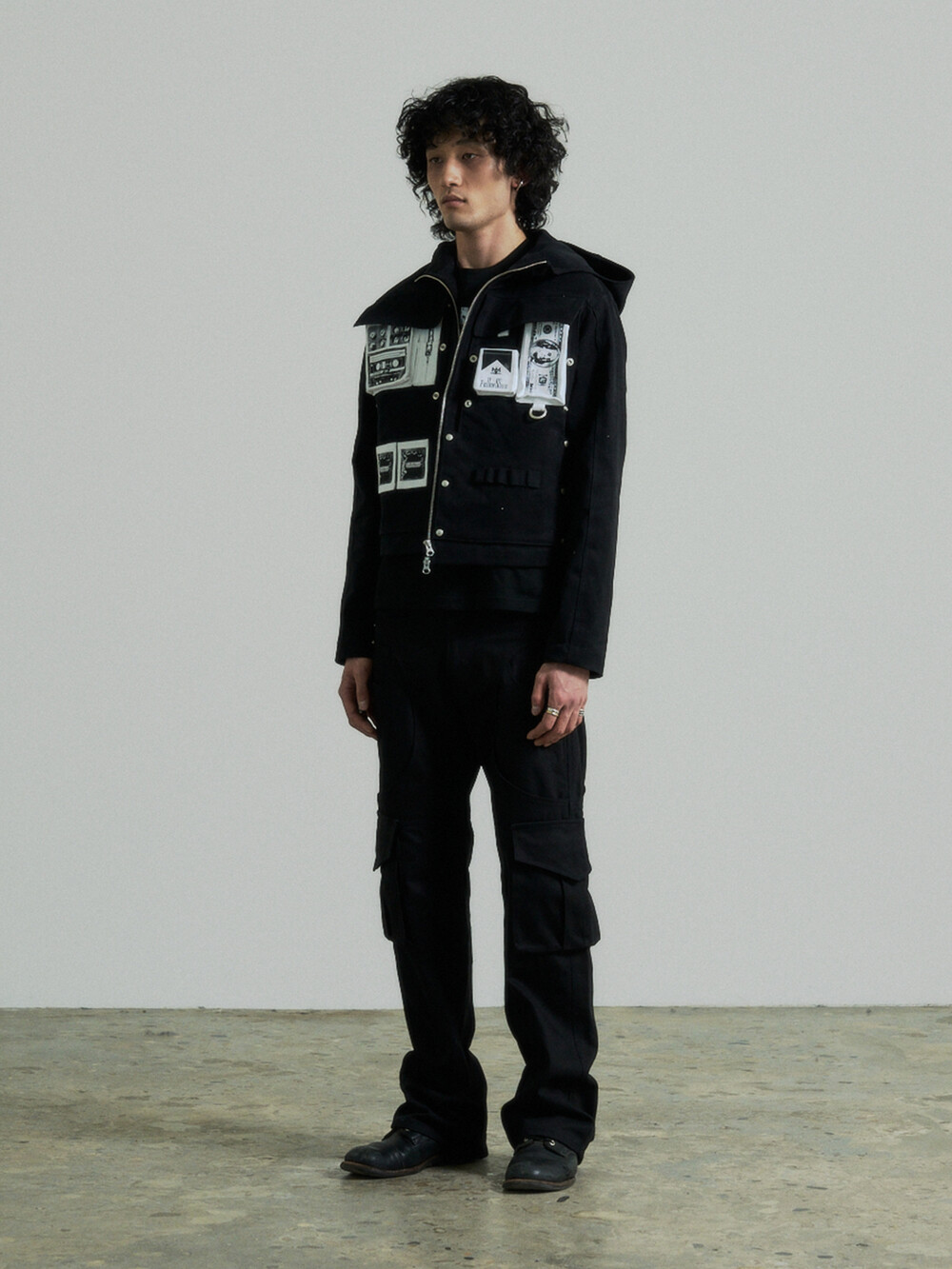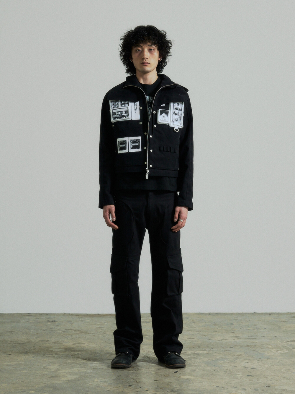 Hidden Fold Printed Multi-pocket Jacket (Black)