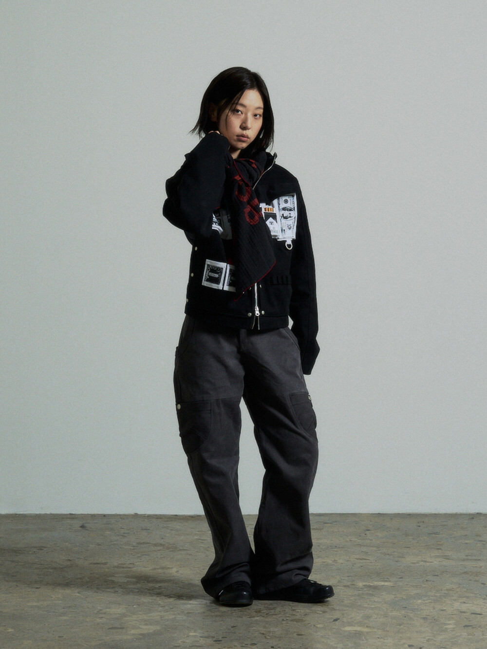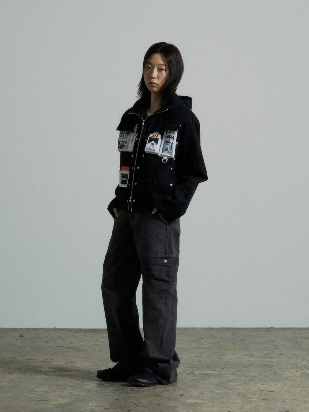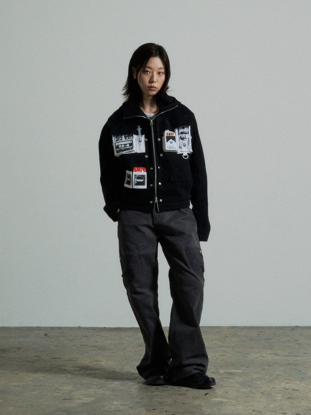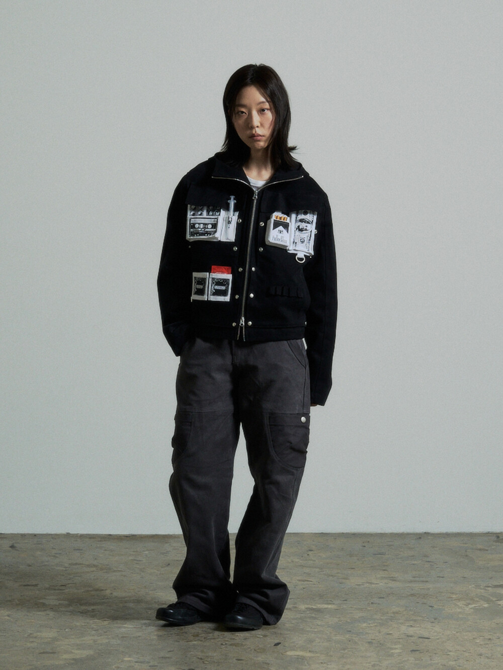 Hidden Fold Printed Multi-pocket Jacket (Black)