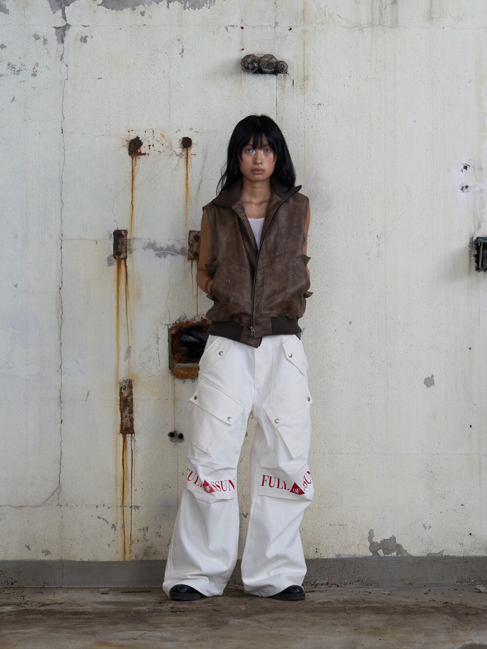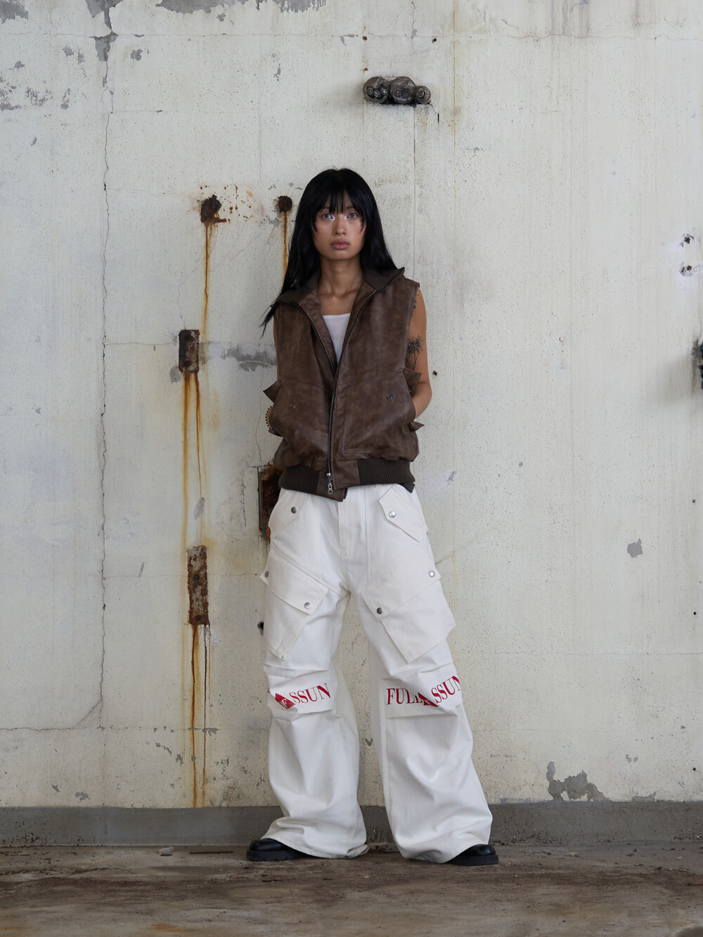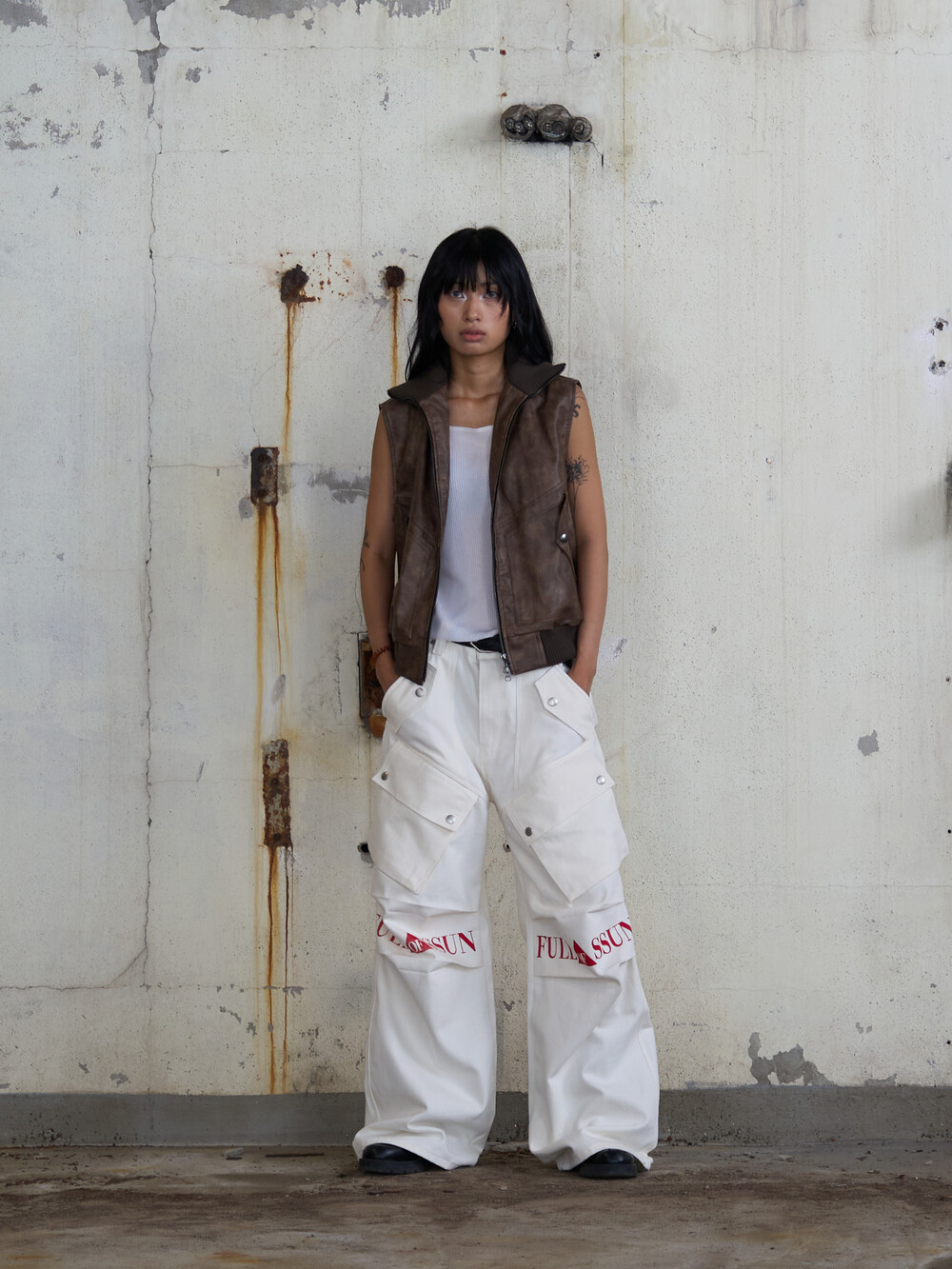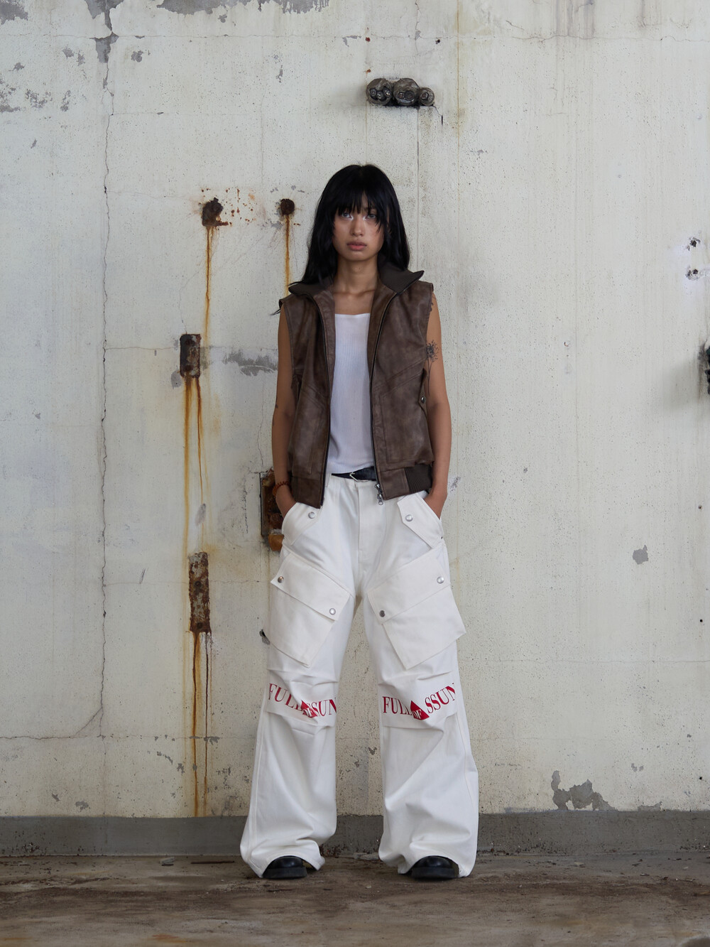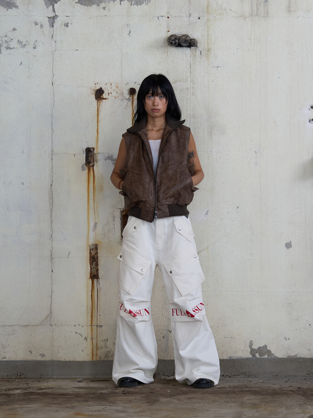 - CargoPocket Detail Leather Vest
