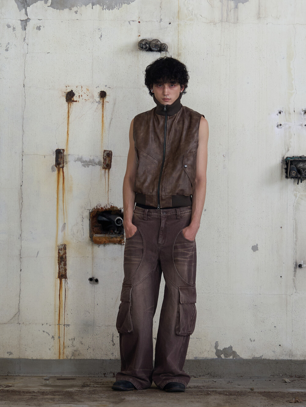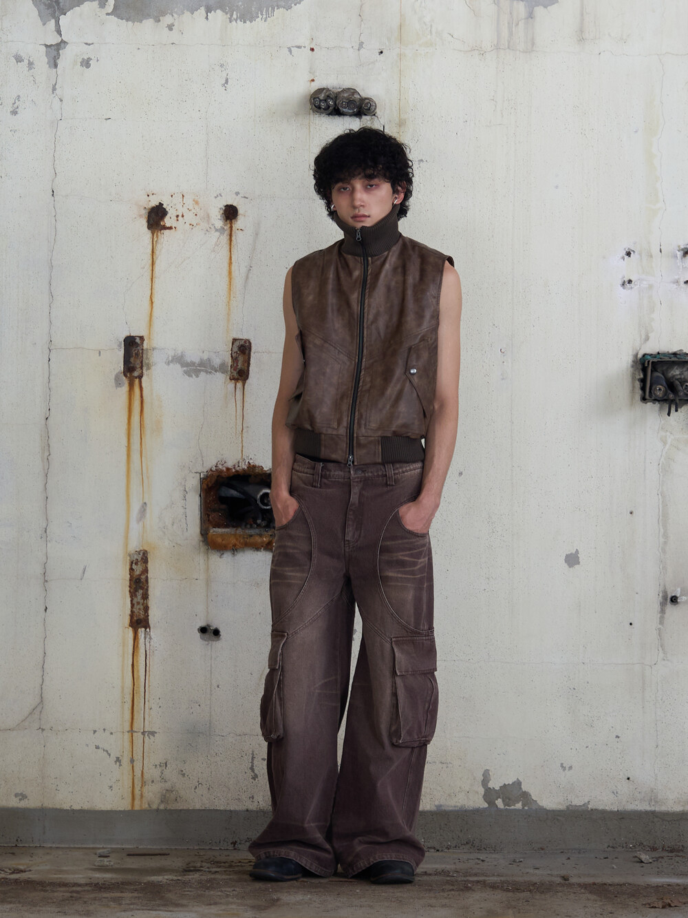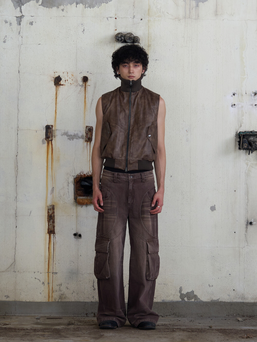 Leather Cargo Vest (Brown)