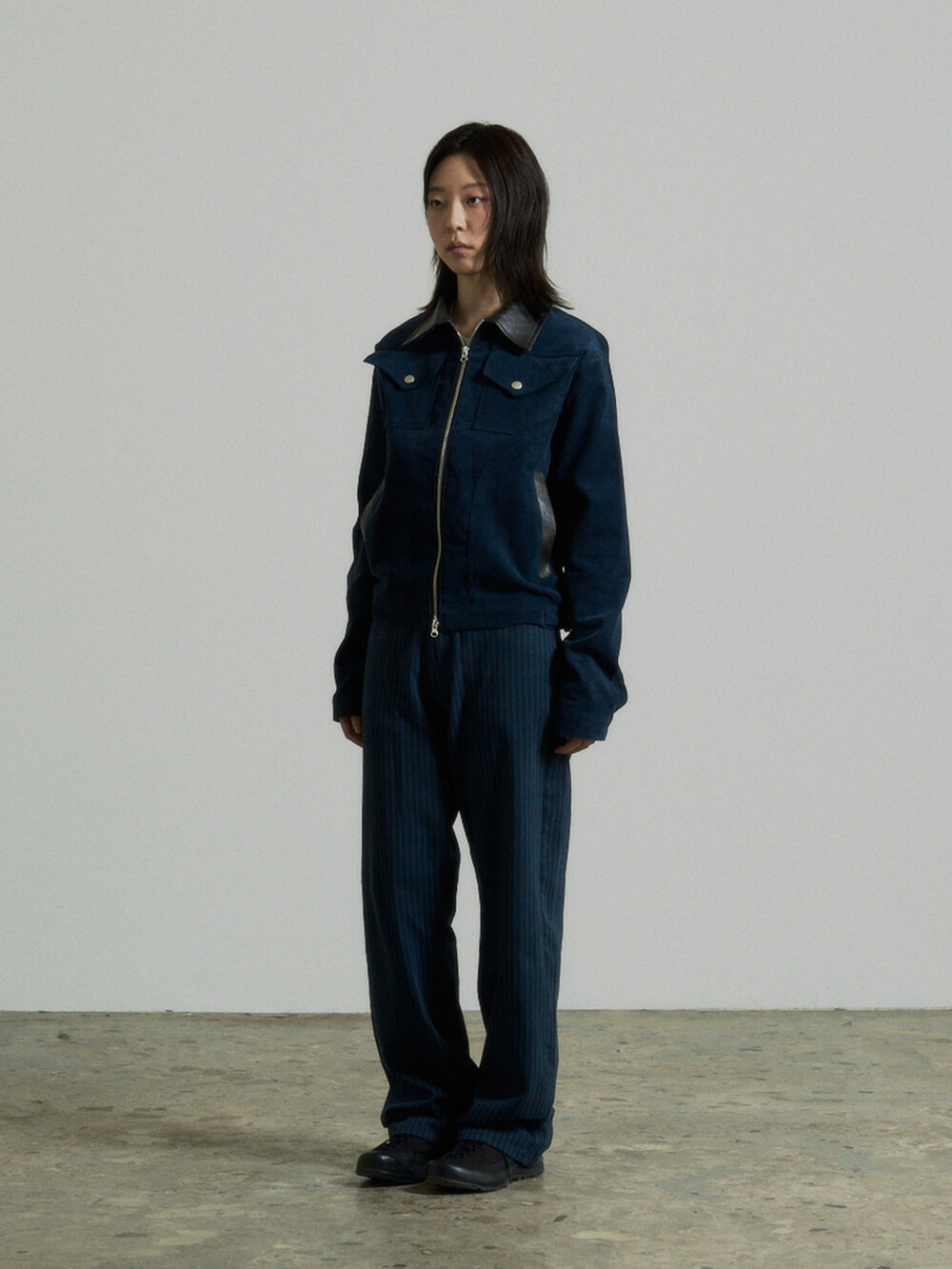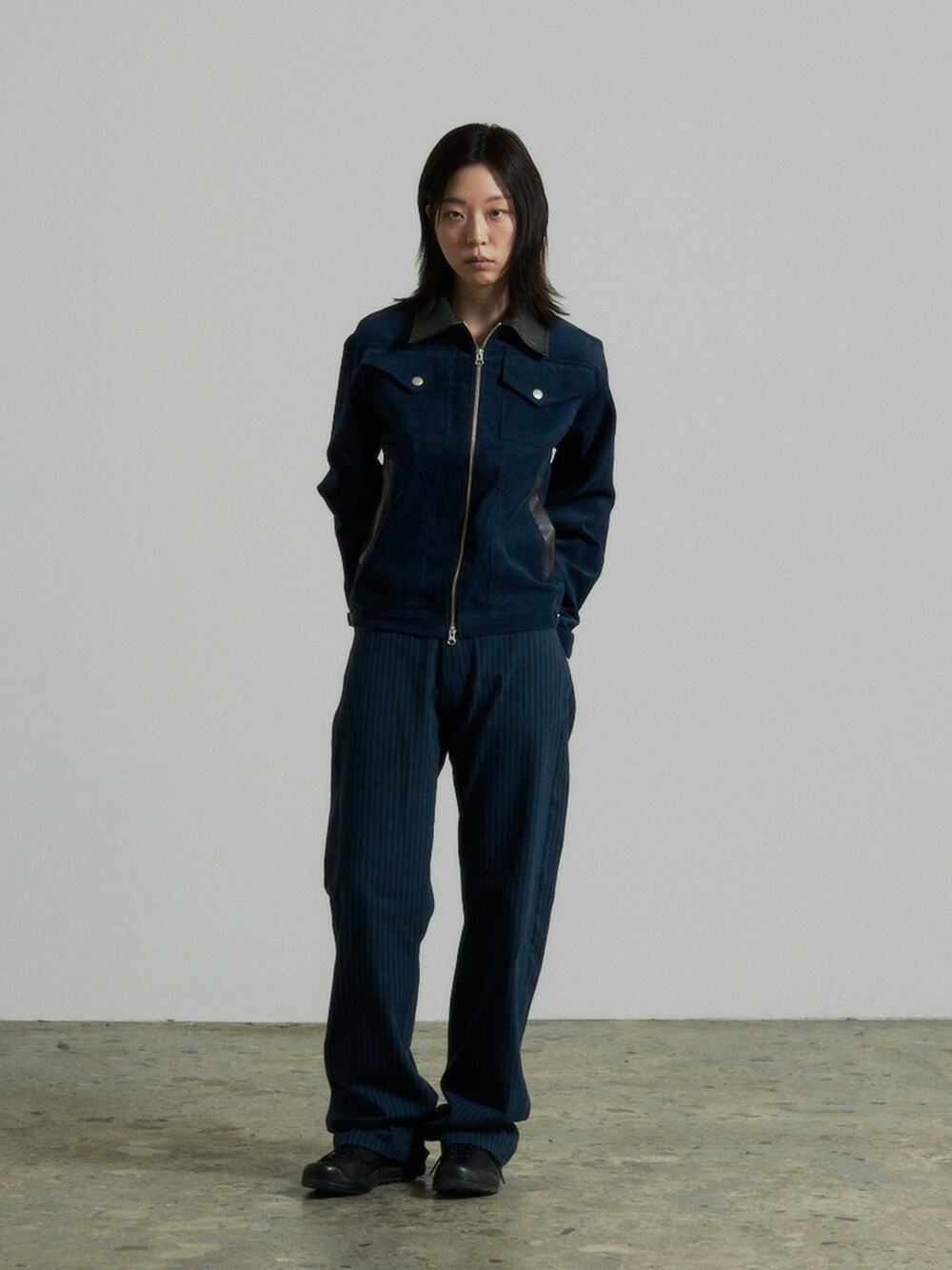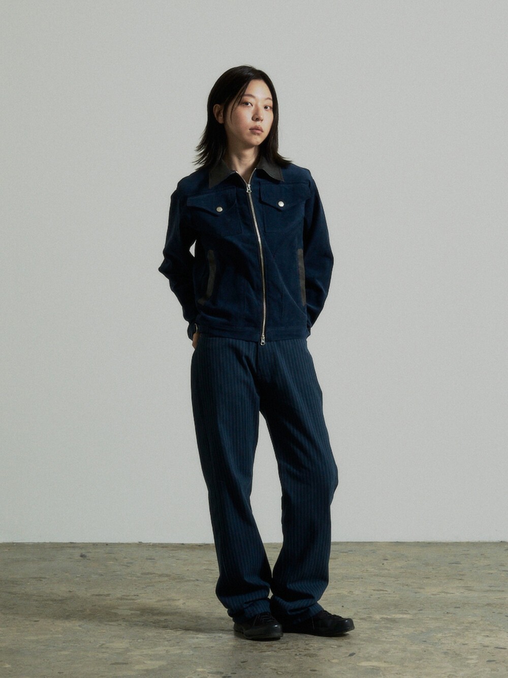 Multi Pocket Corduroy Trucker Jacket (Navy)