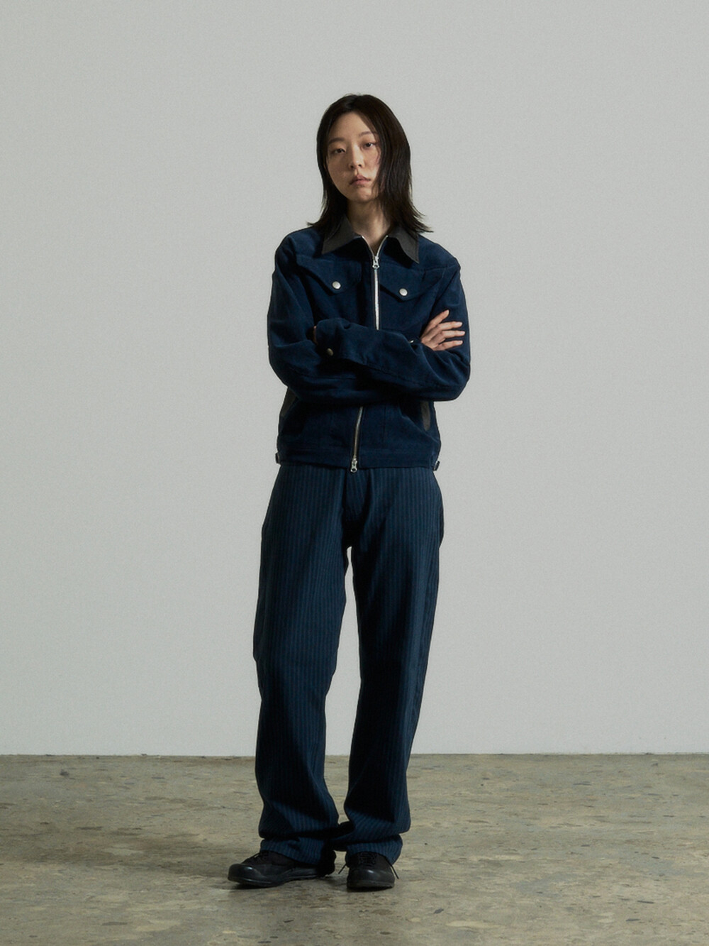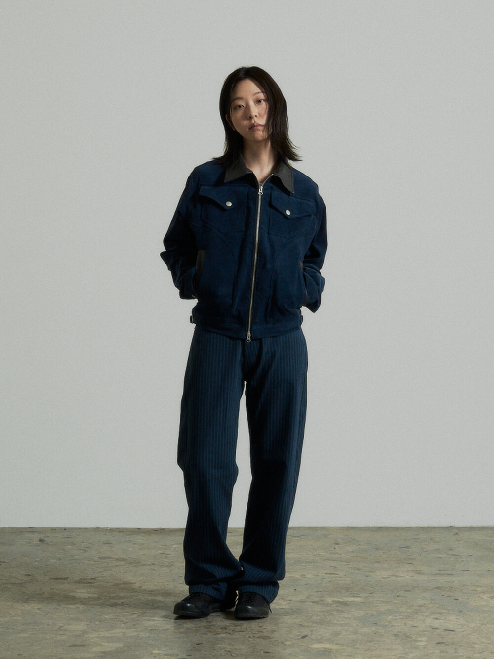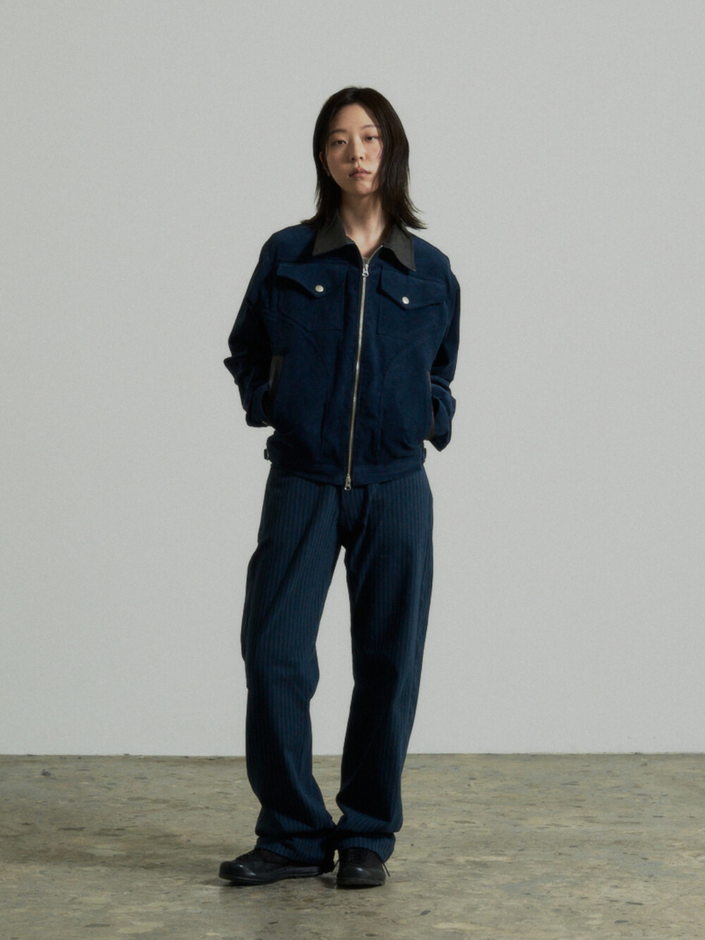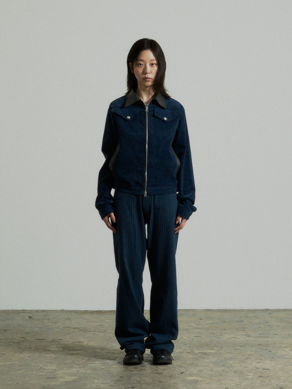 Multi Pocket Corduroy Trucker Jacket (Navy)