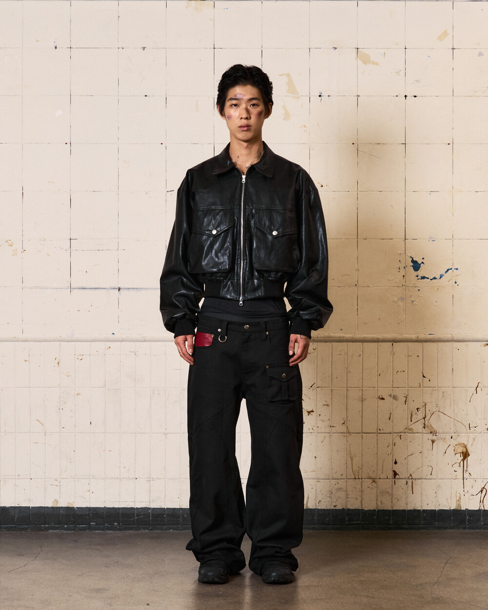 - Back pocket detail featuring the logo from the 25FW concept film "Sin City"