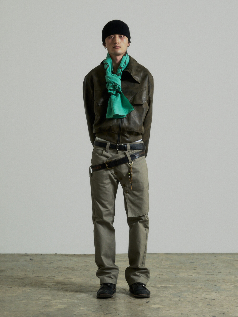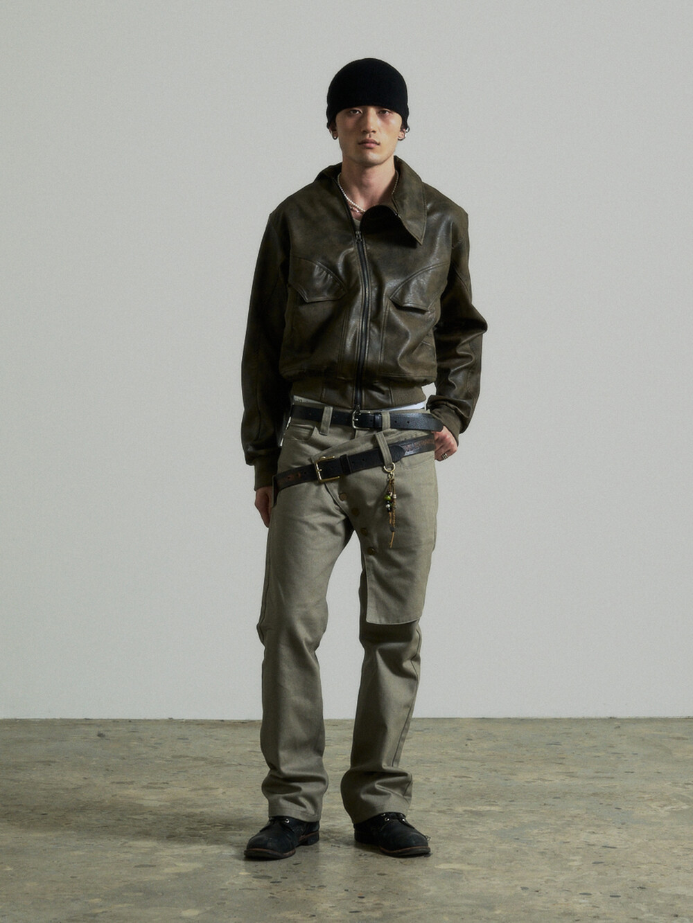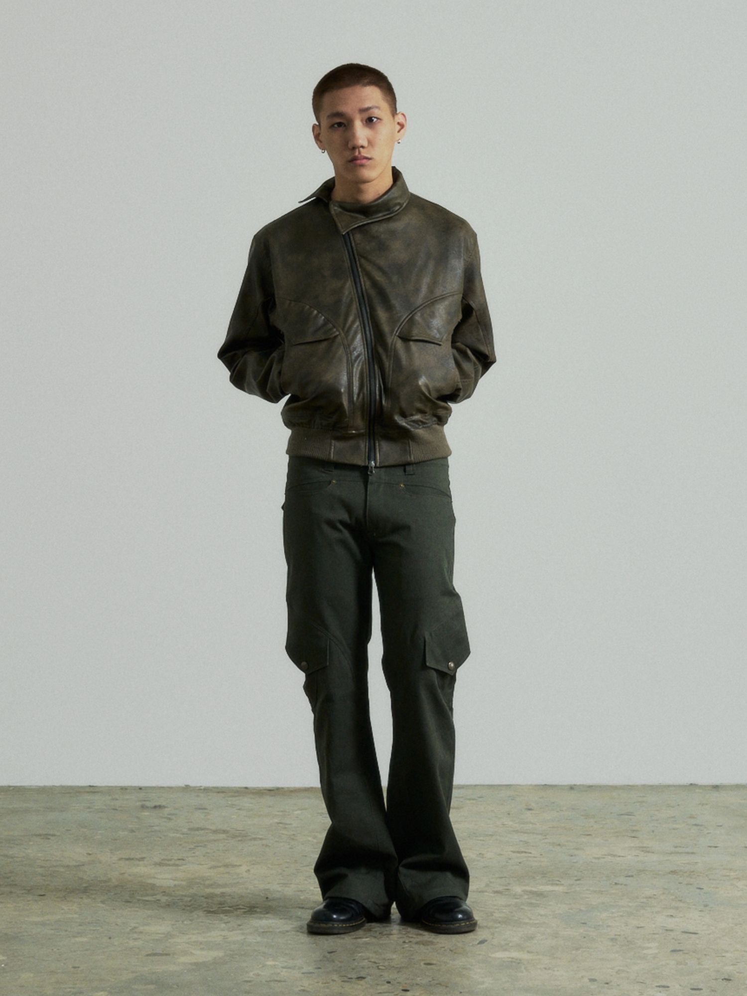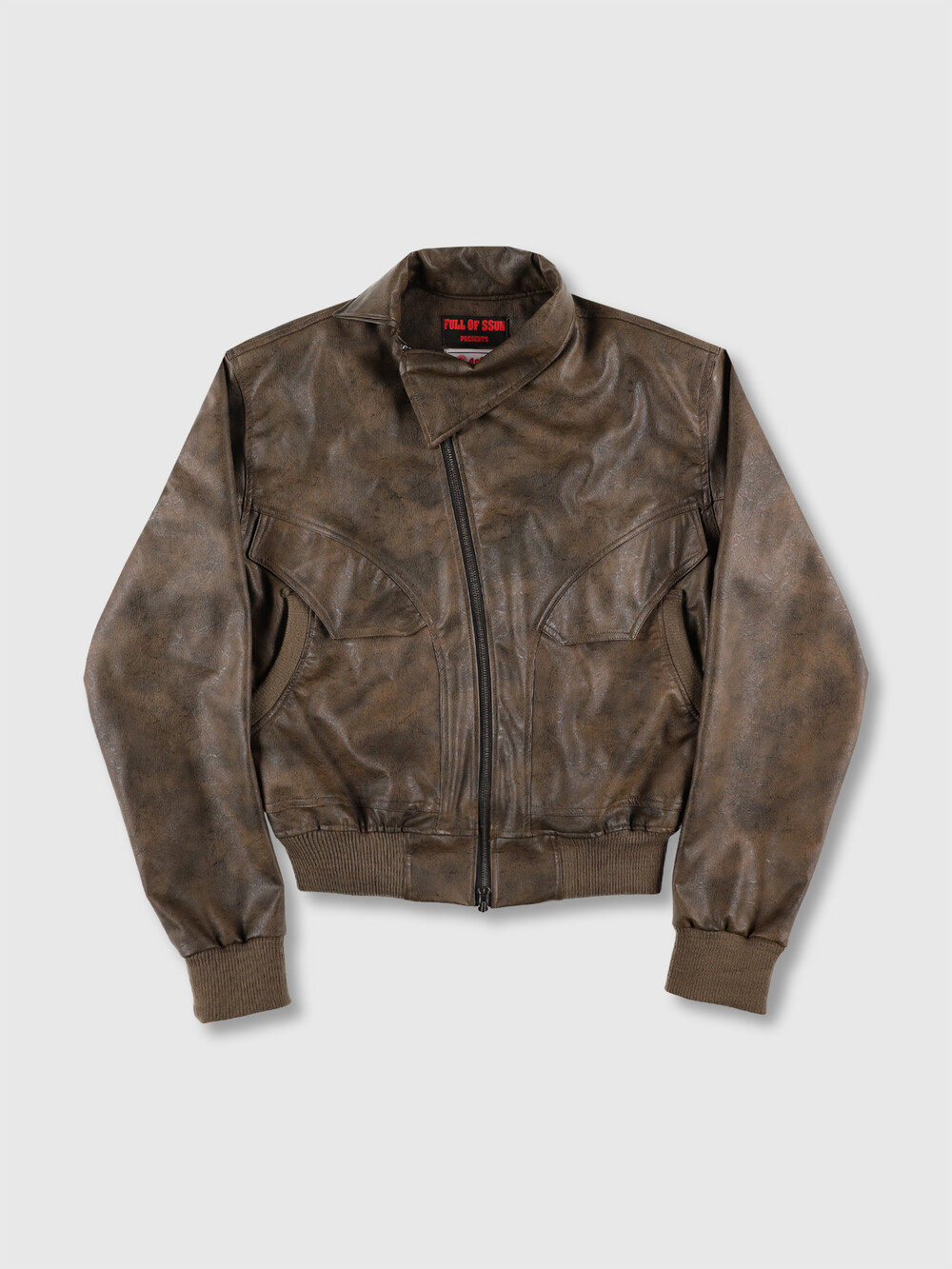 Unbalance Leather Jacket (Brown)