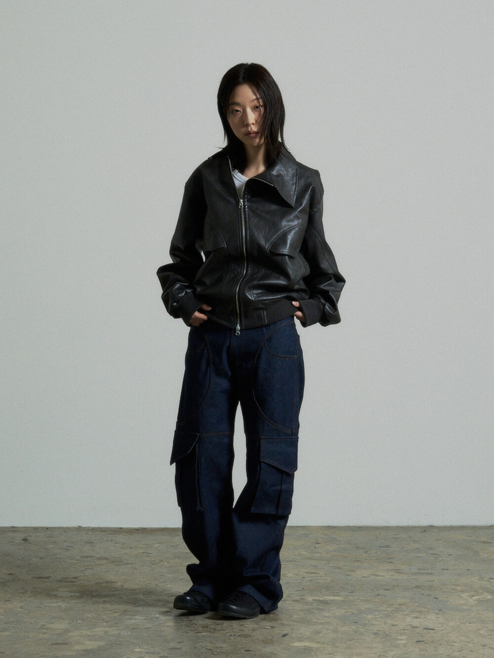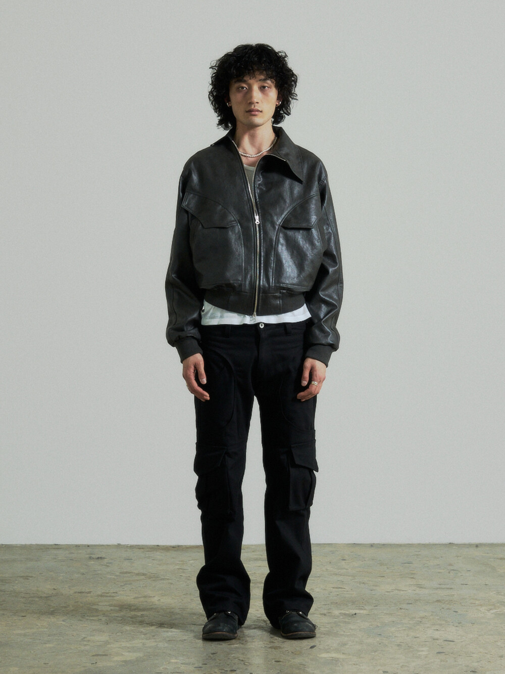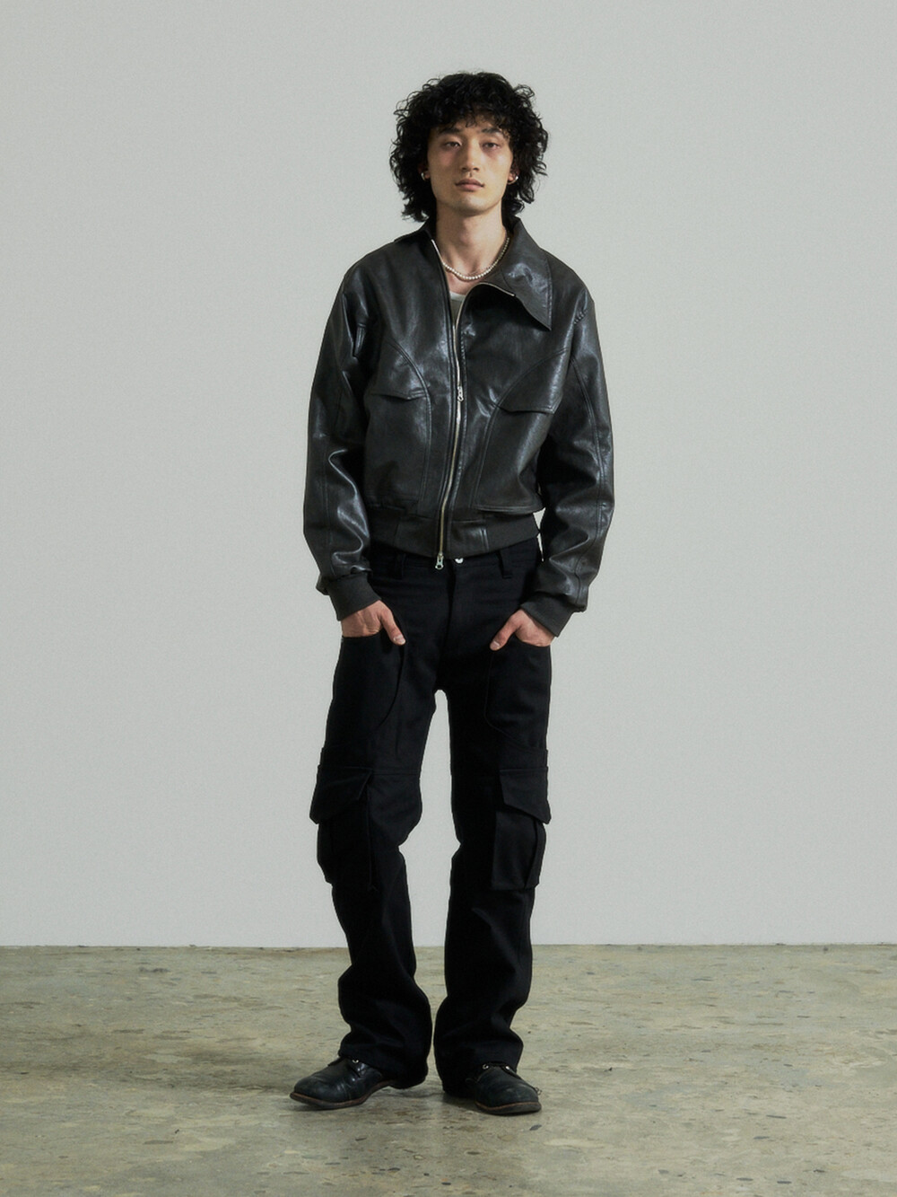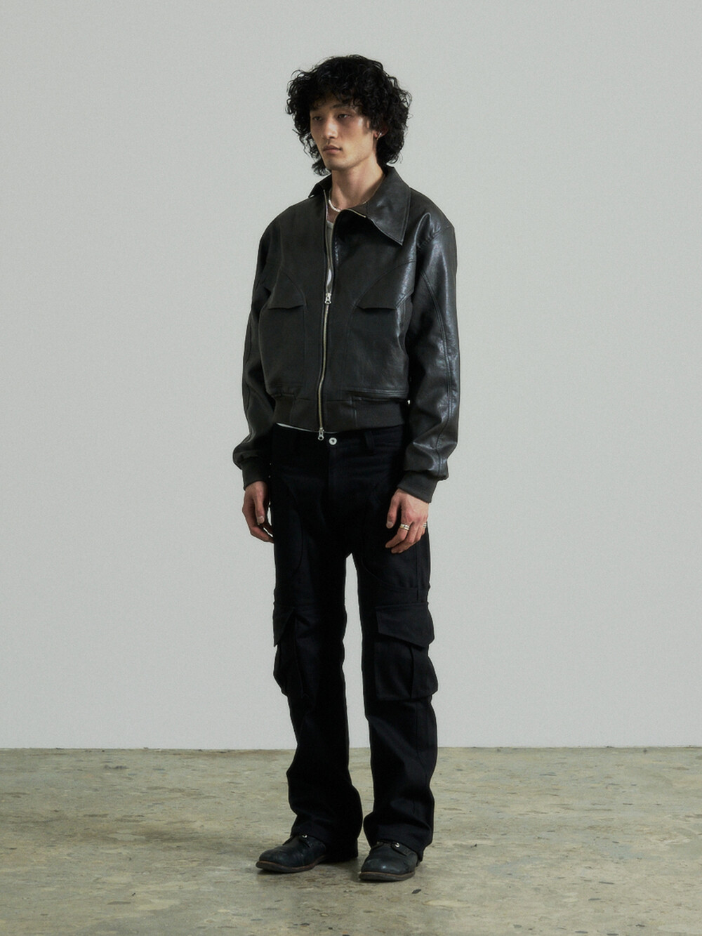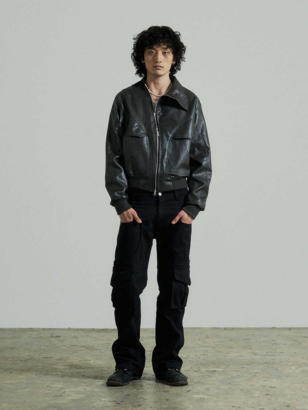 Unbalance Leather Jacket (Grey)