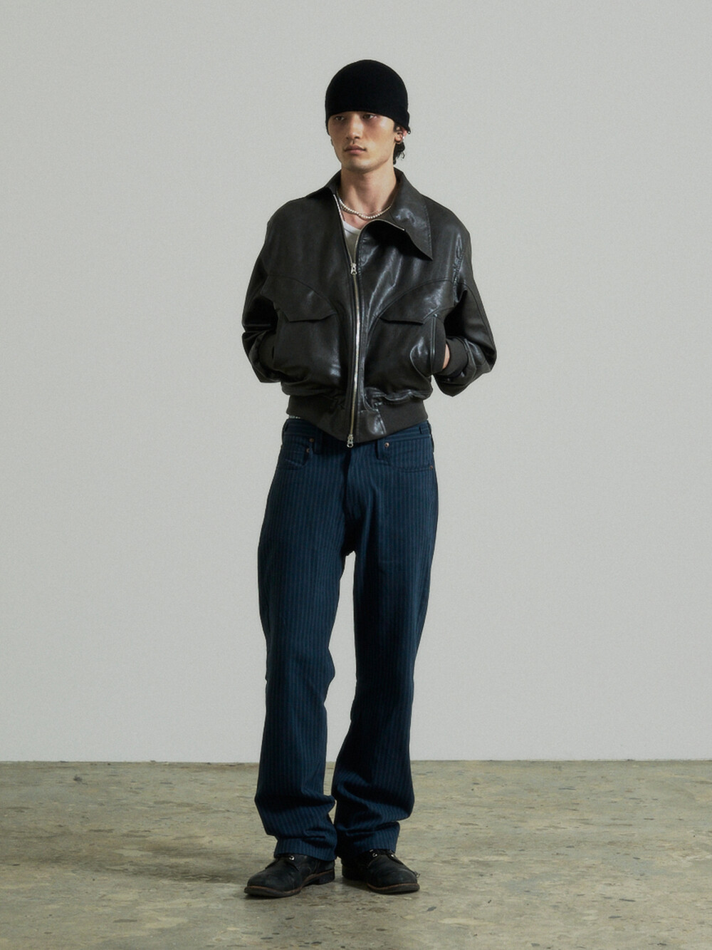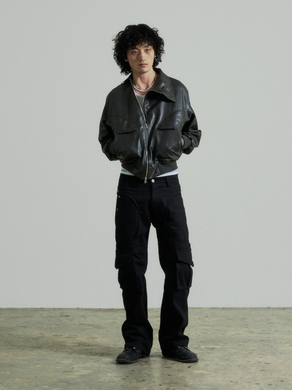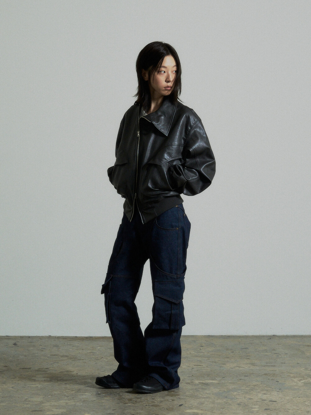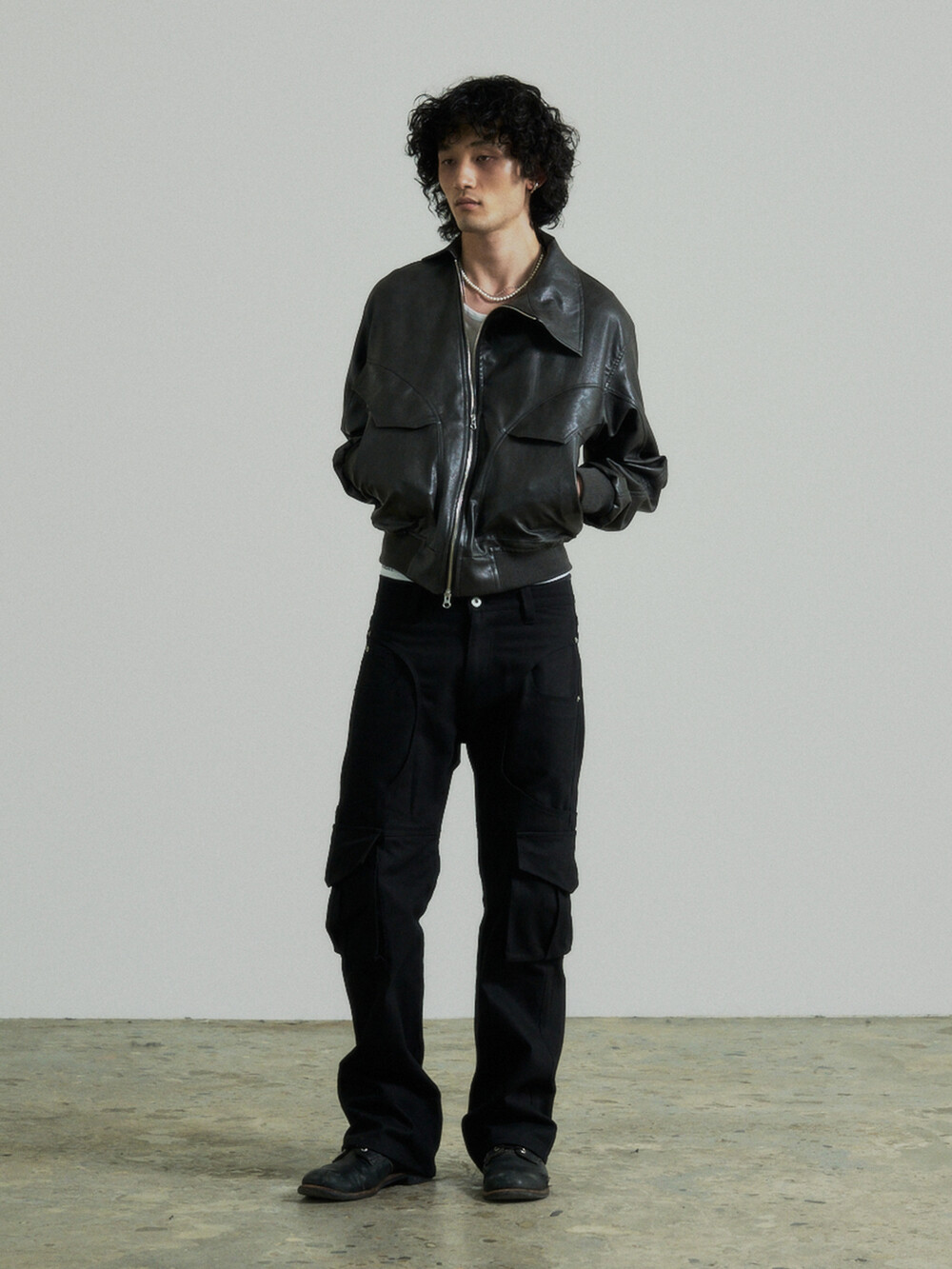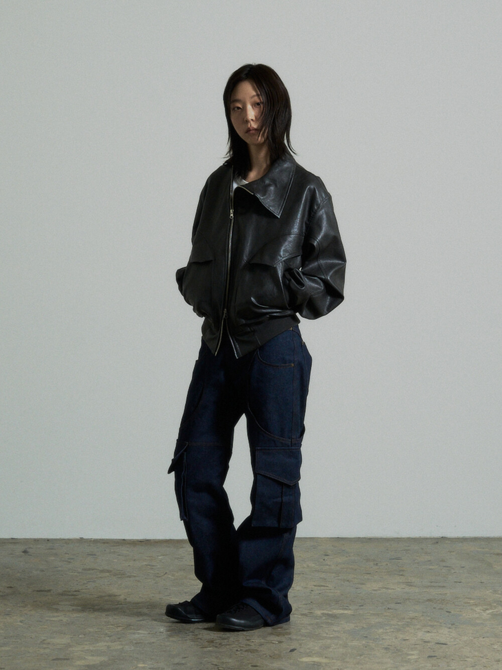 Unbalance Leather Jacket (Grey)