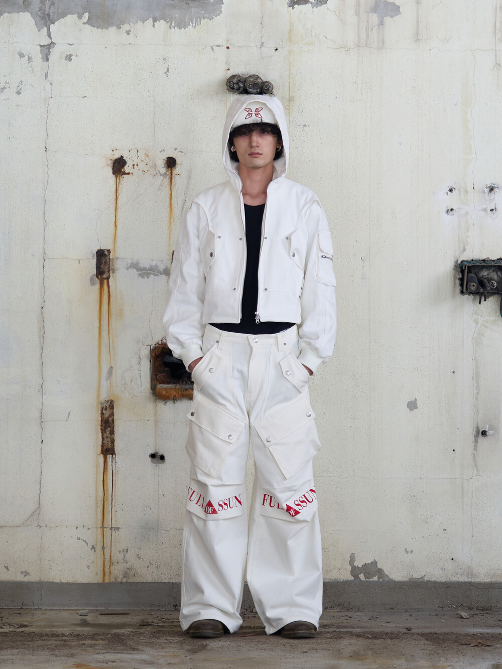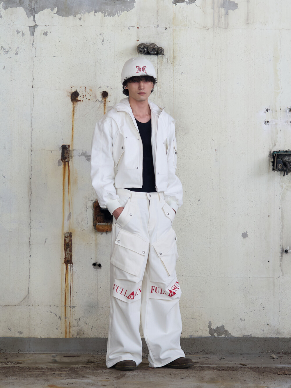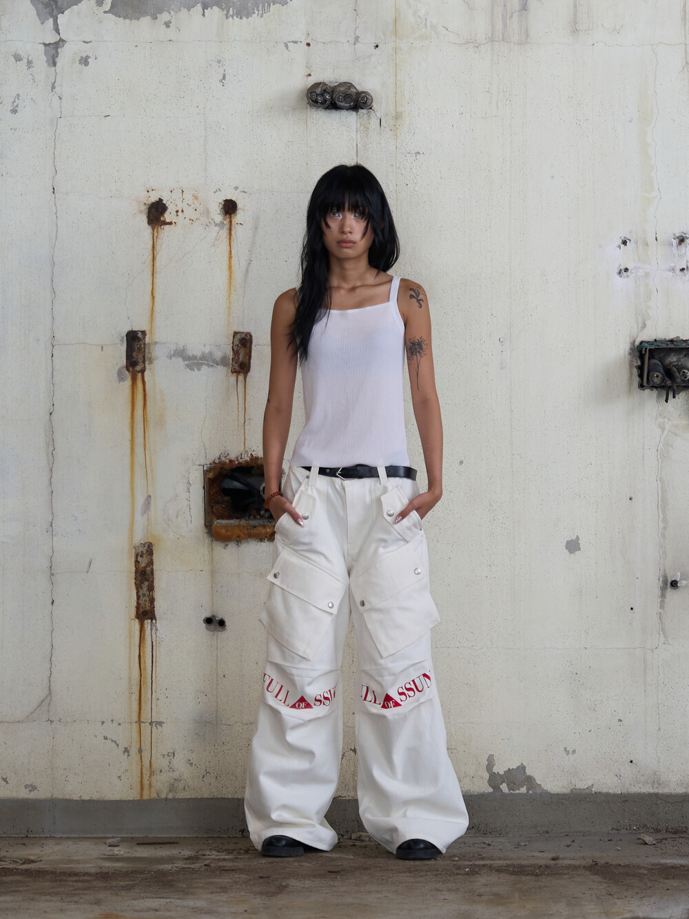Ghost In The Shell Logo Denim Cargo Pants (White)