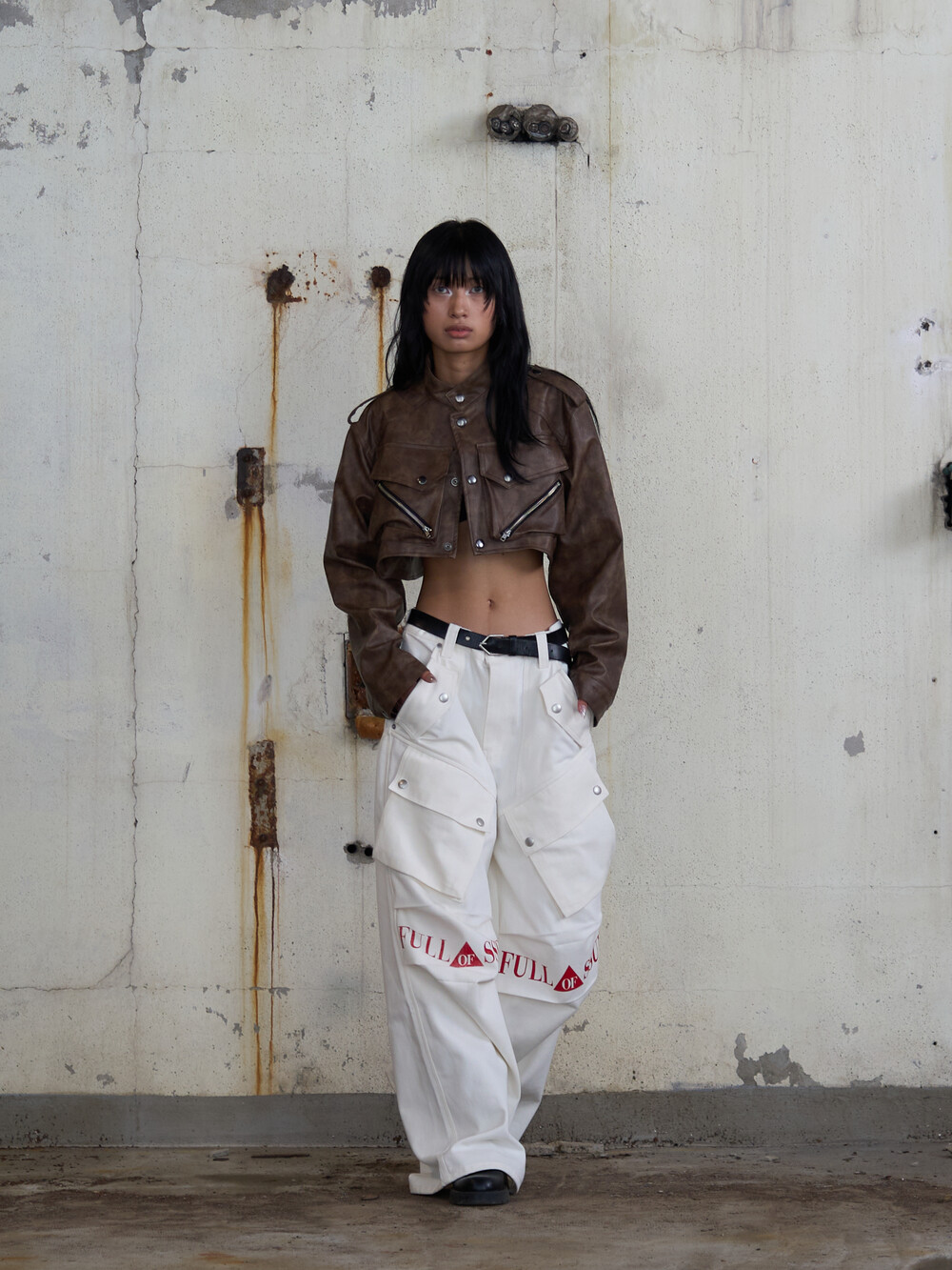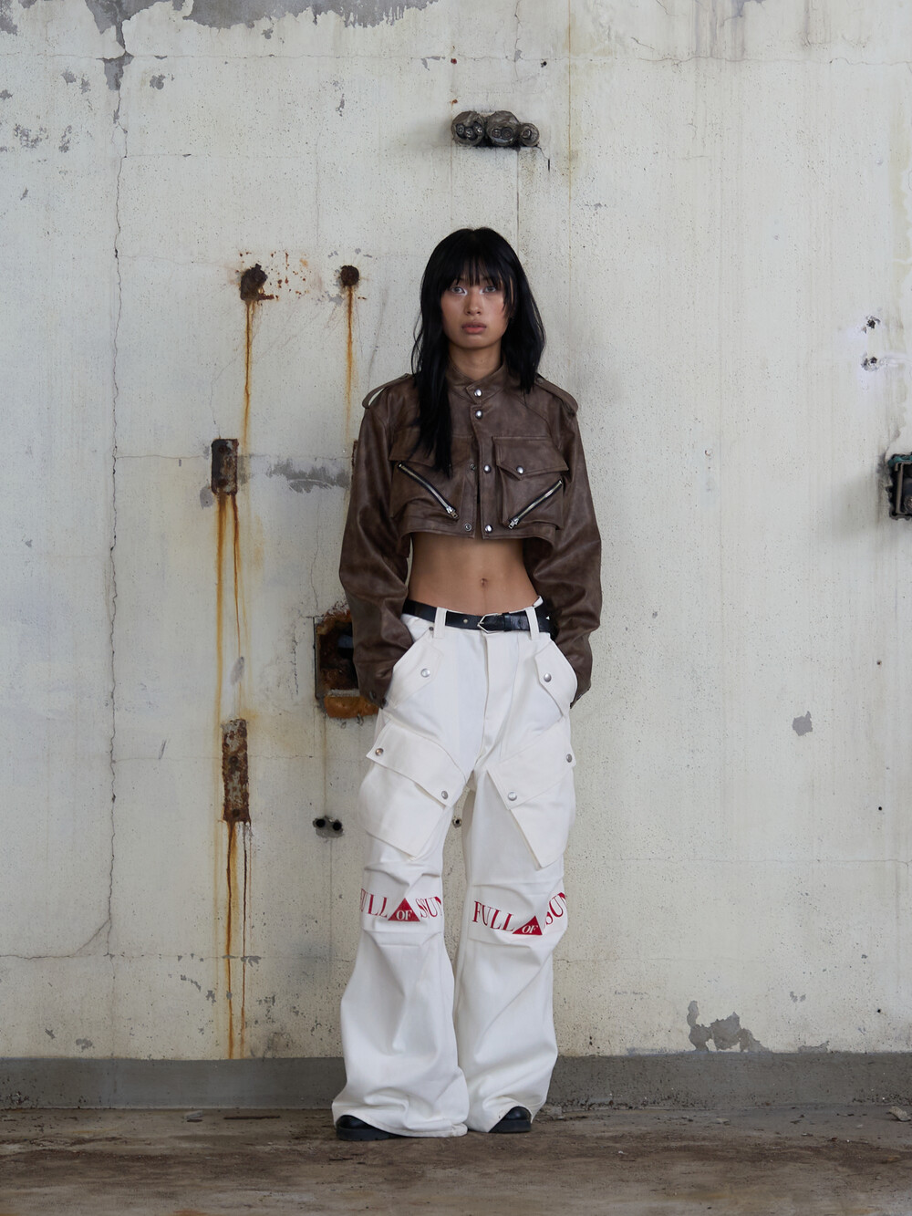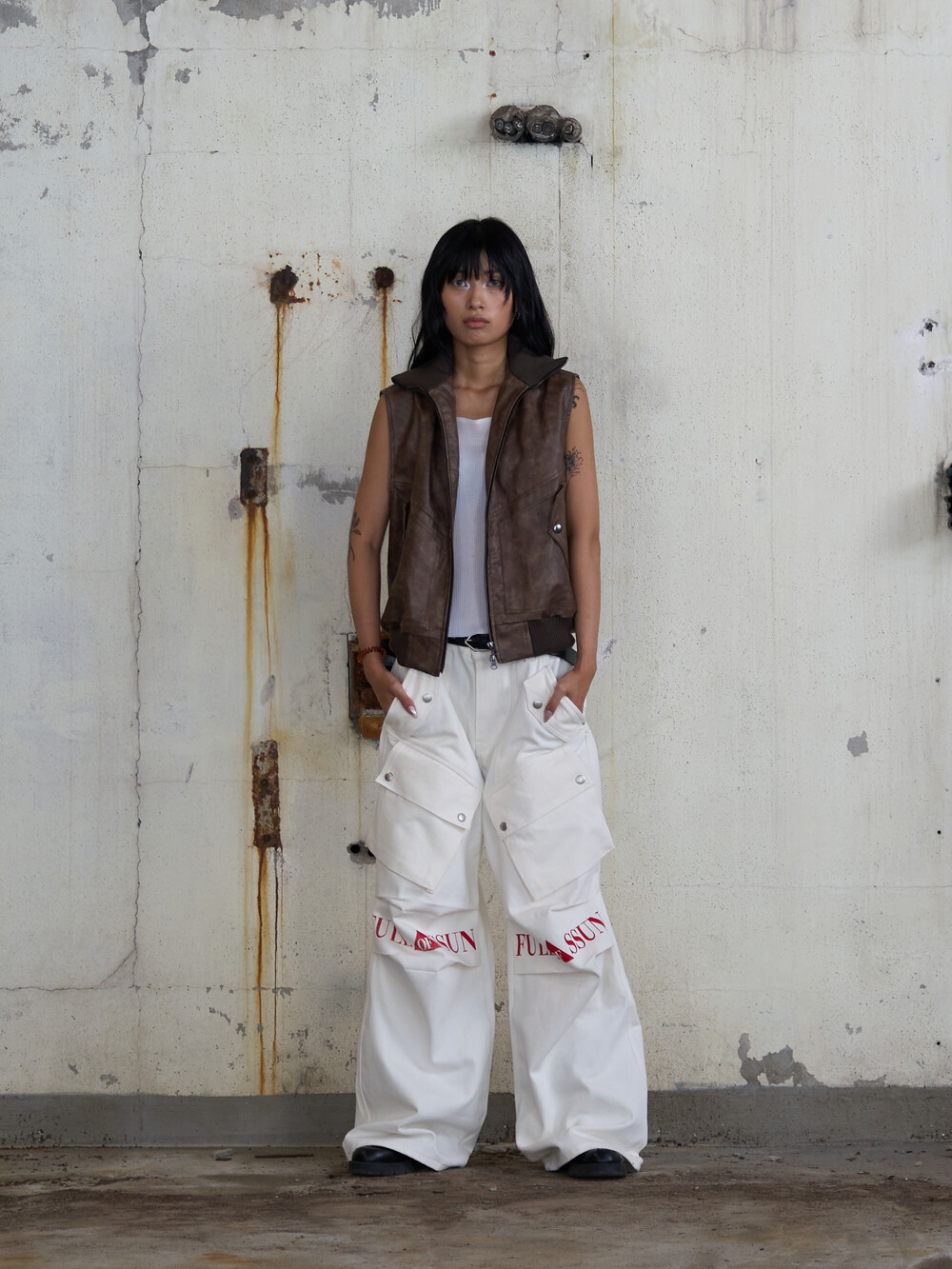 Ghost In The Shell Logo Denim Cargo Pants (White)