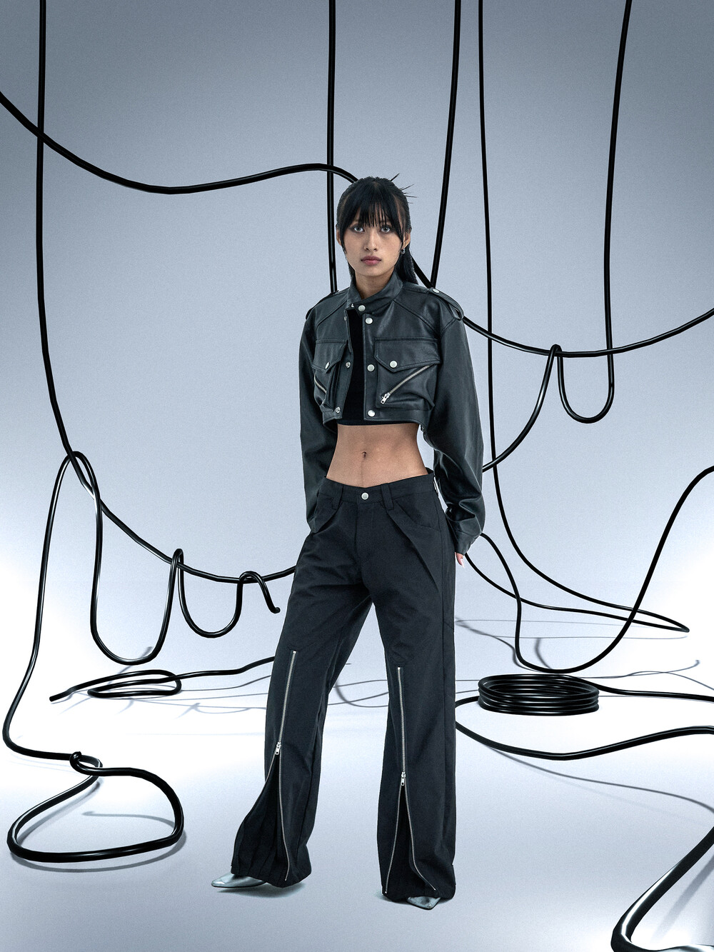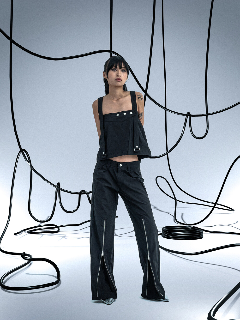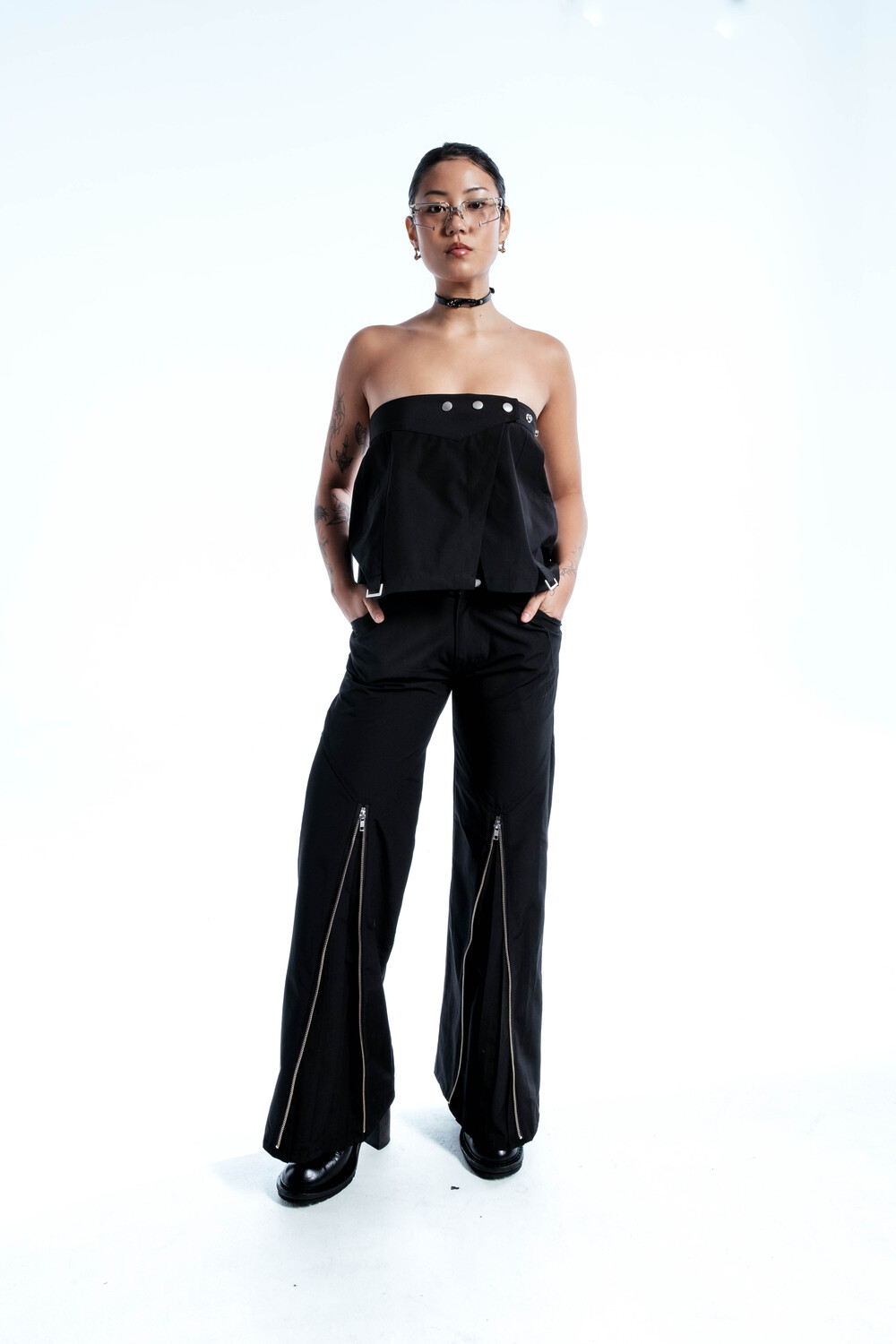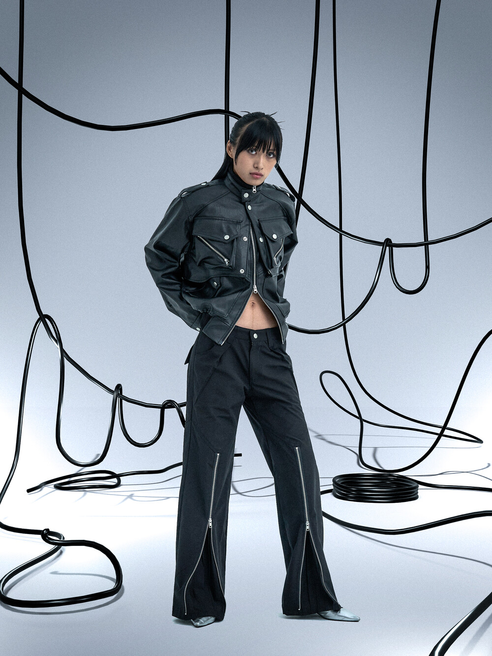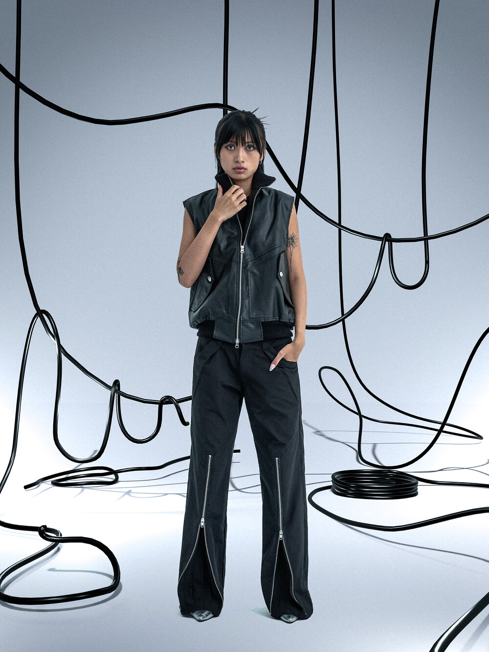 Ghost In The Shell Zip Pleat Pants (Black)