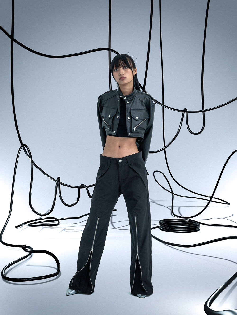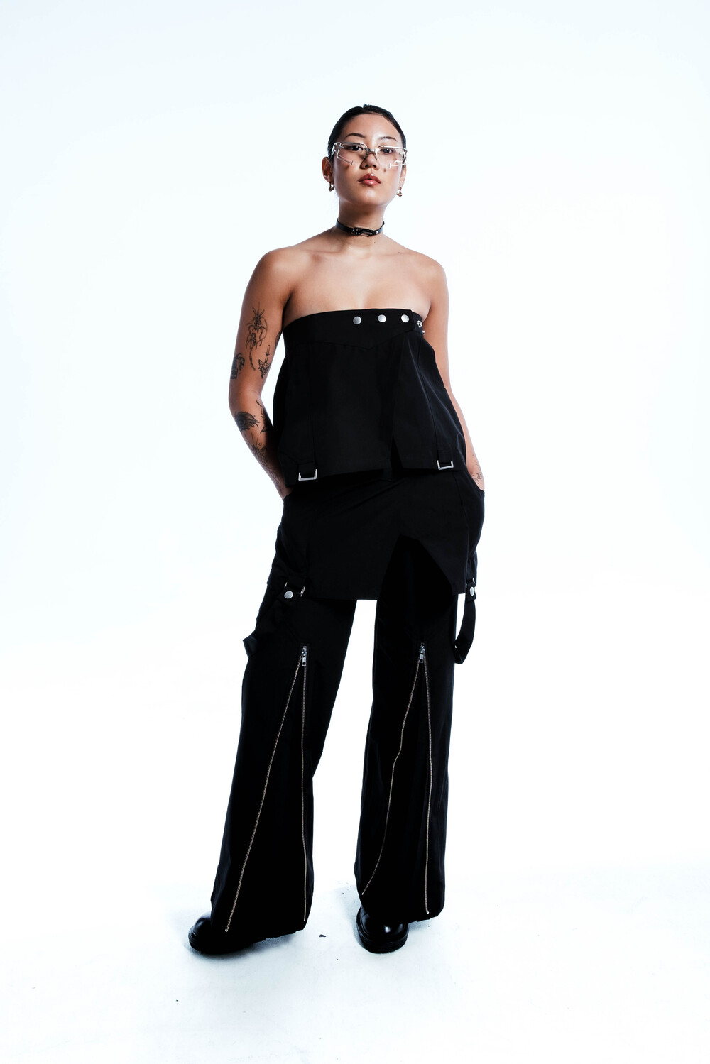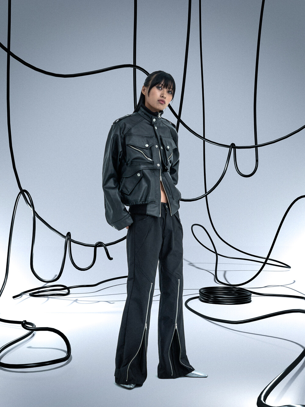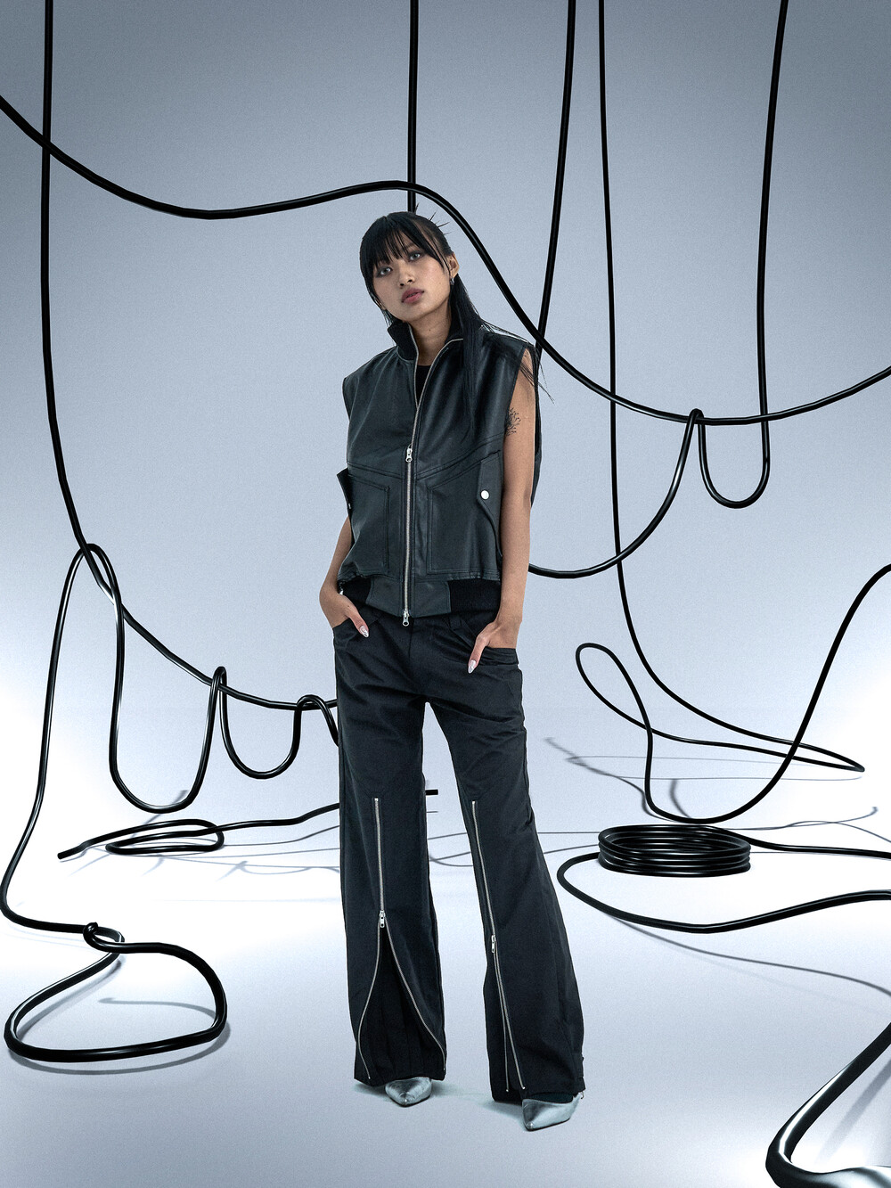 Ghost In The Shell Zip Pleat Pants (Black)