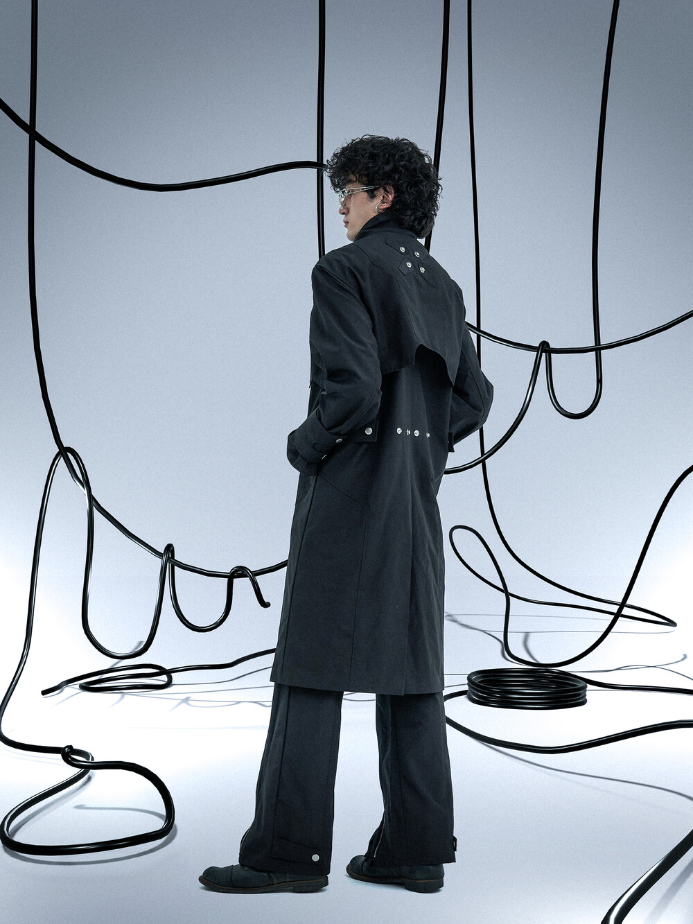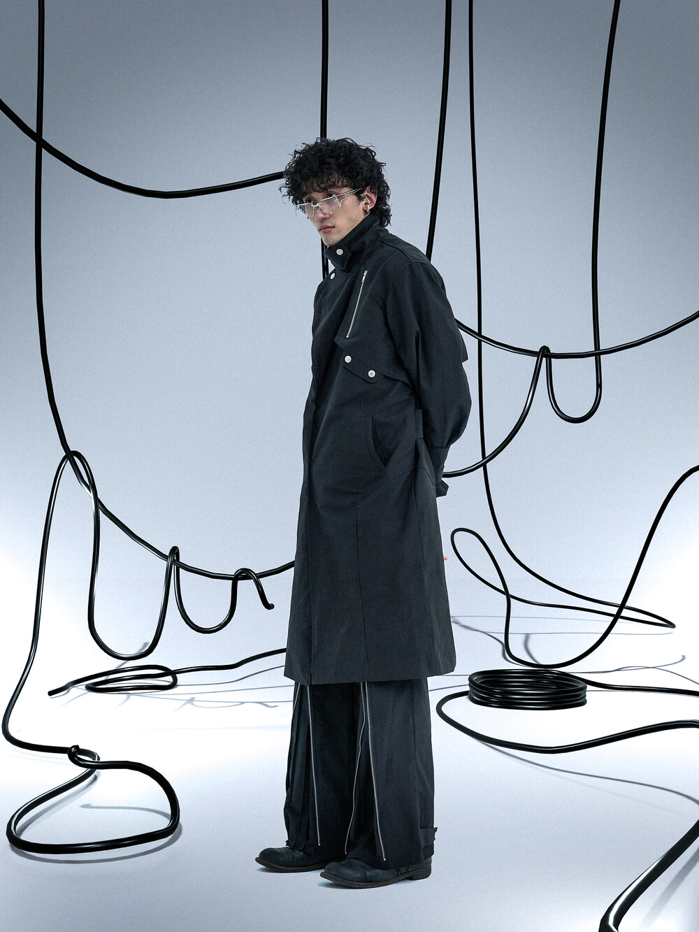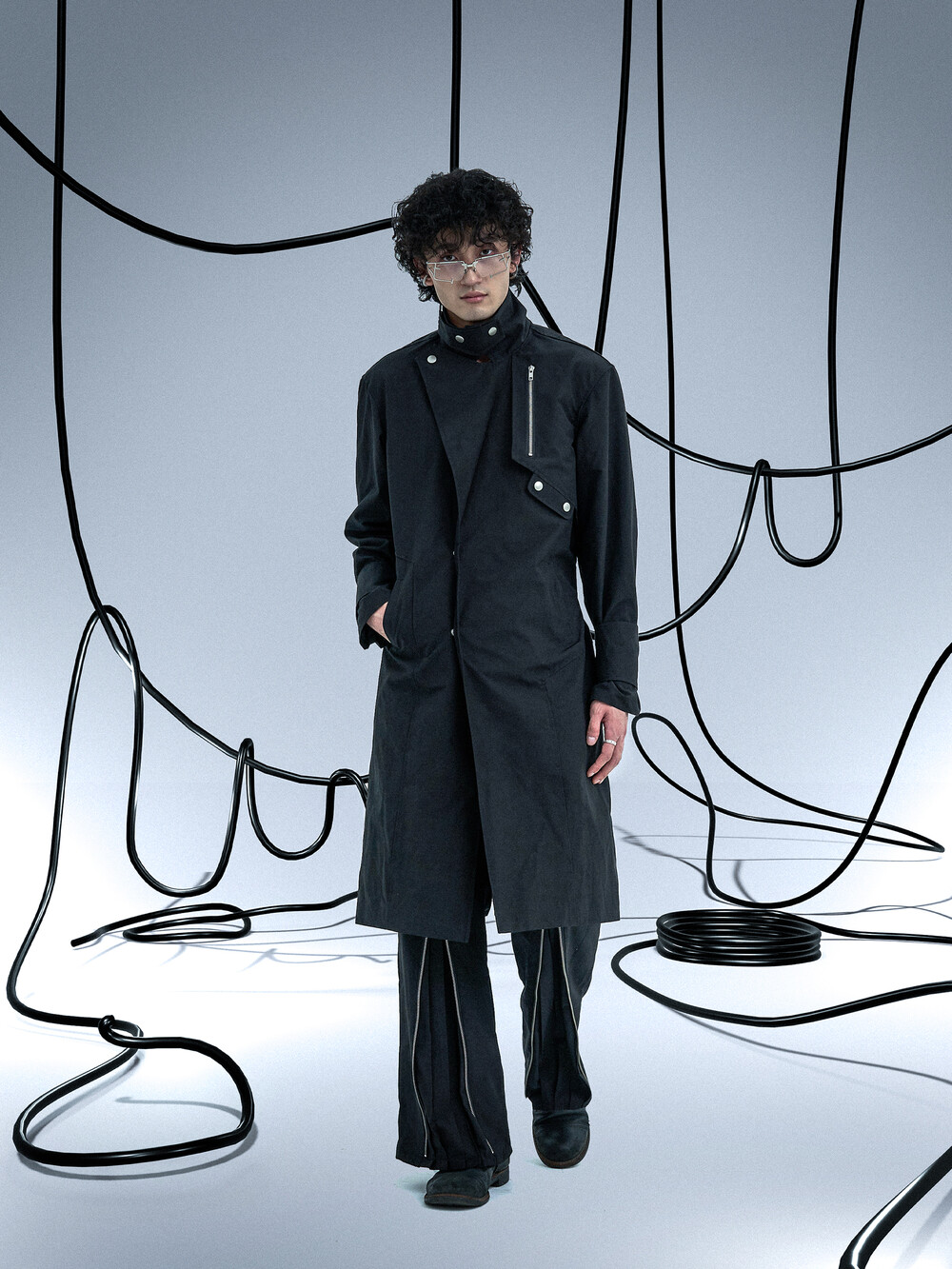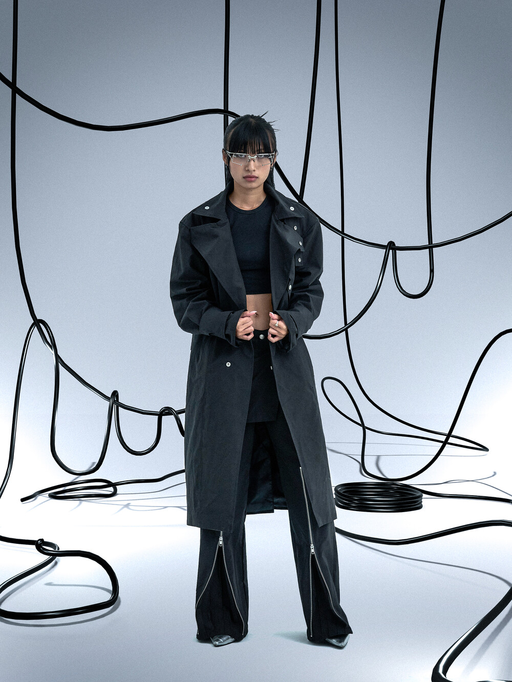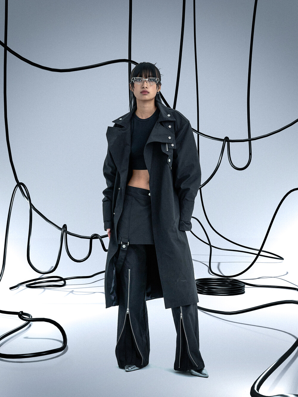 Ghost In The Shell Zip Pleat Pants (Black)